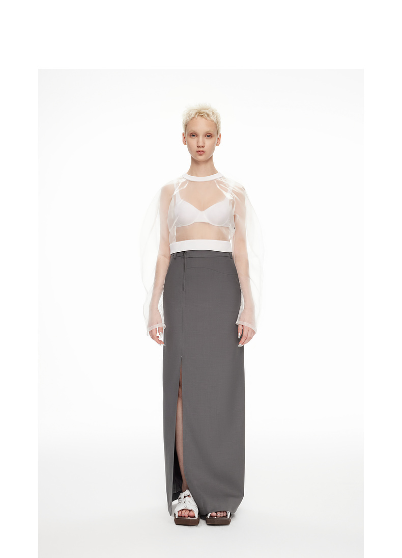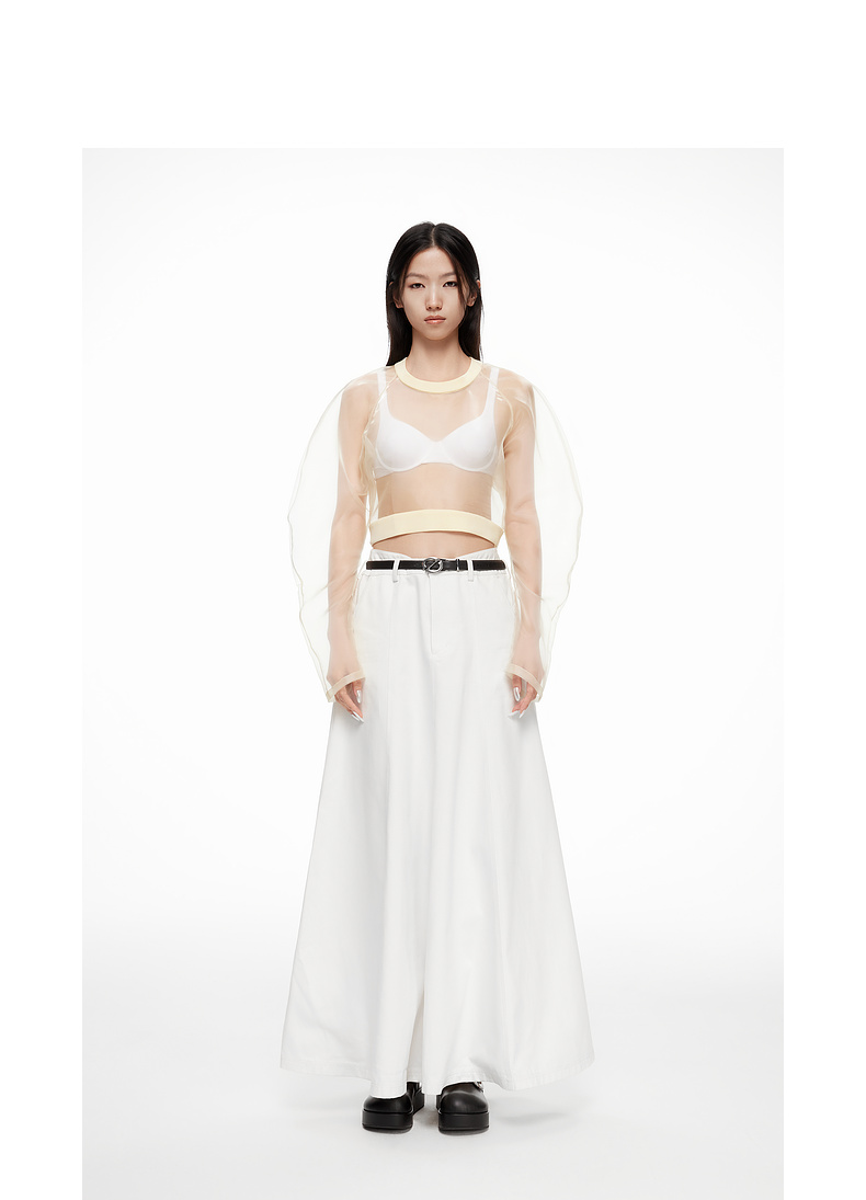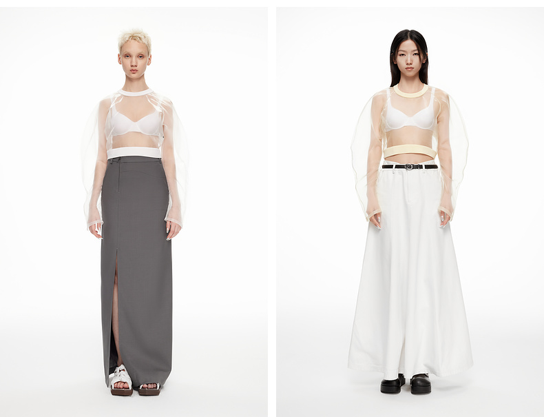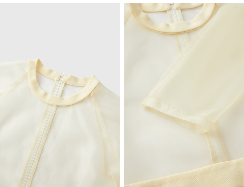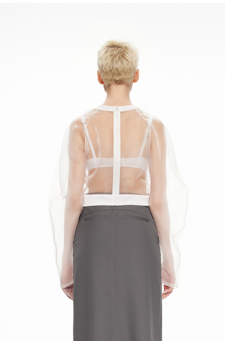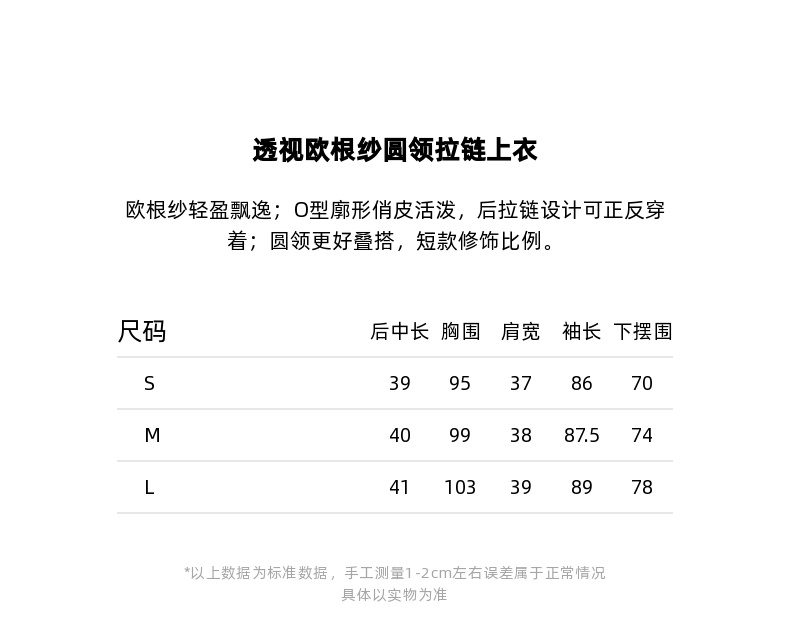 lost in echo2024春夏新品设计师品牌透视欧根纱圆领拉链短款上衣