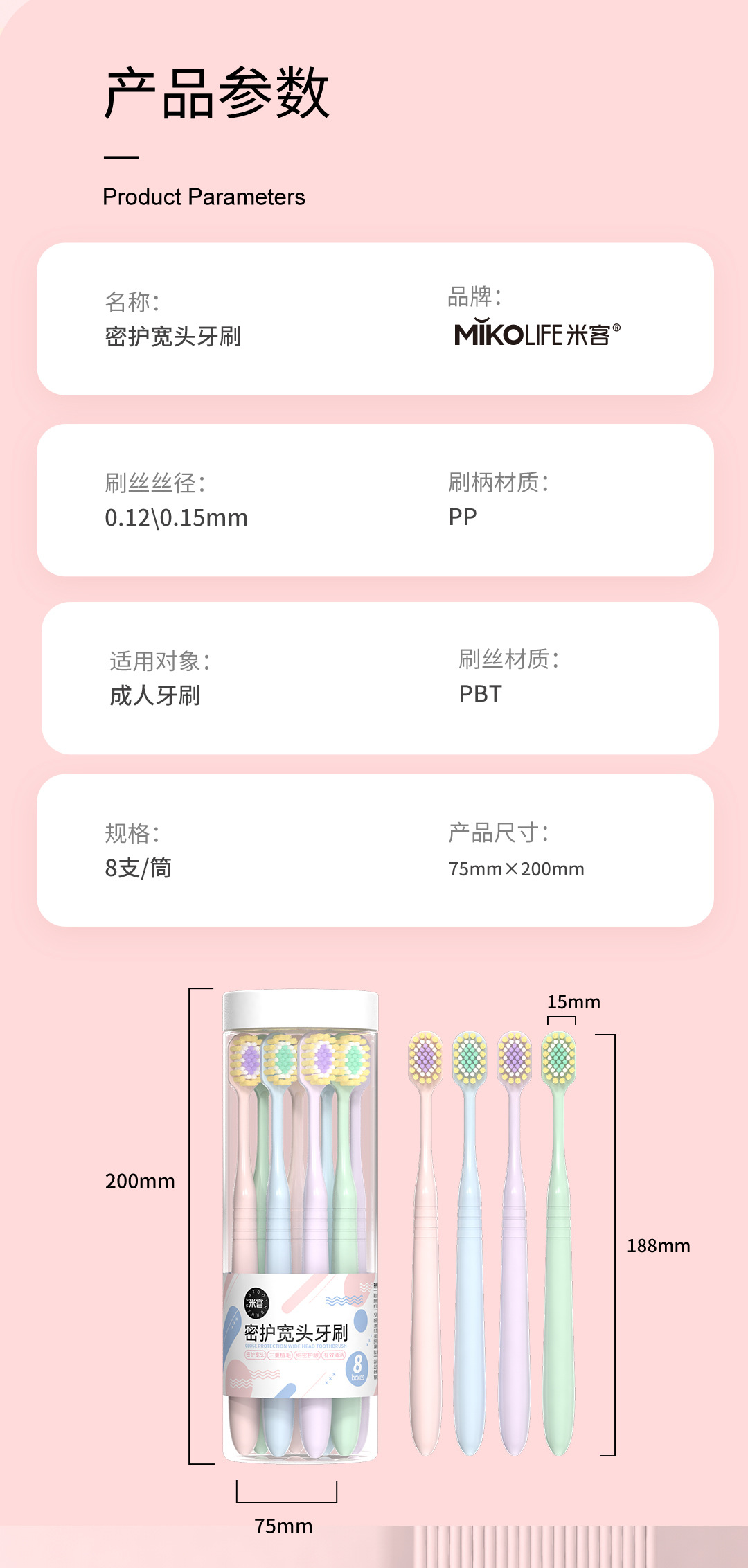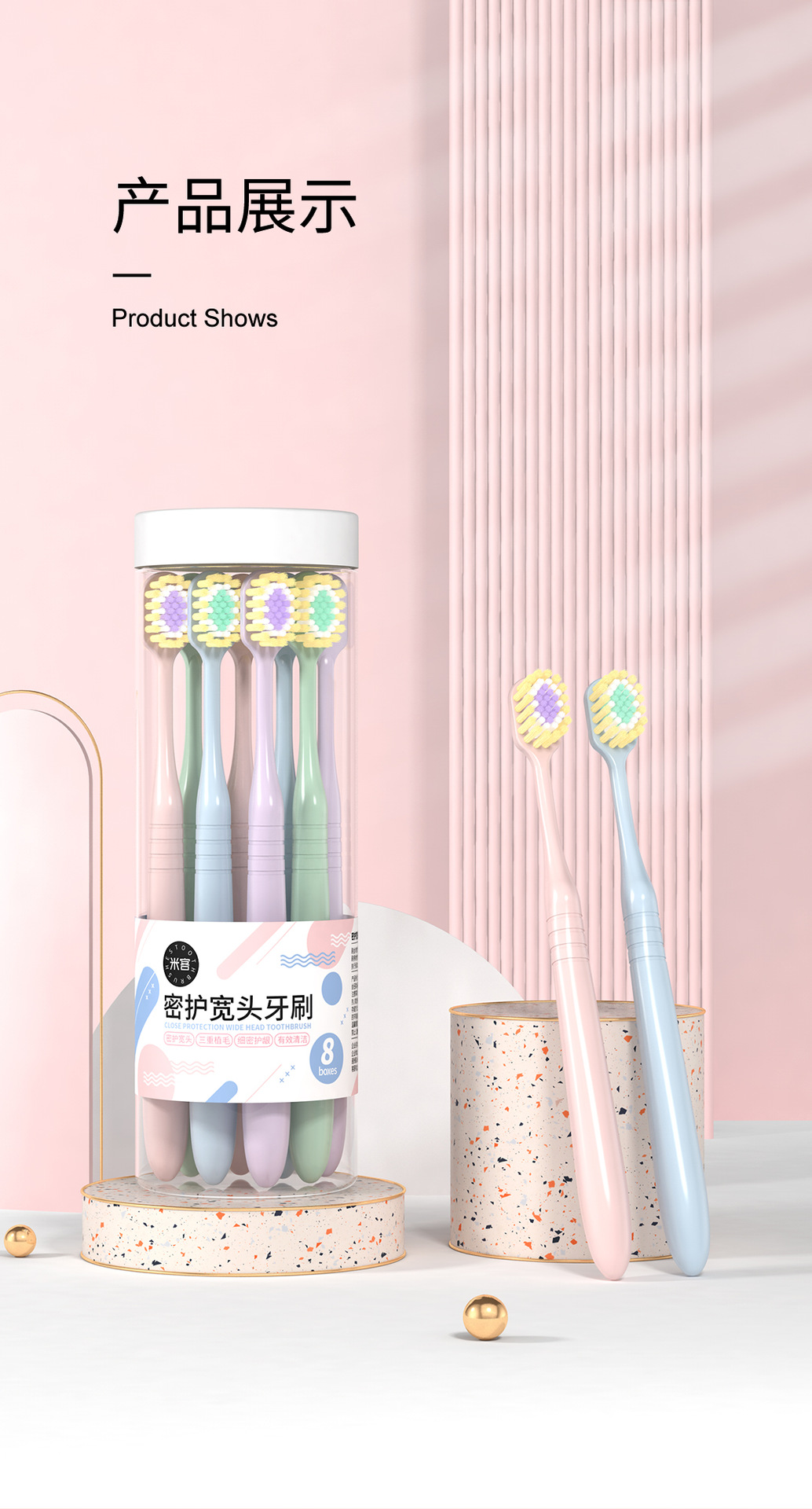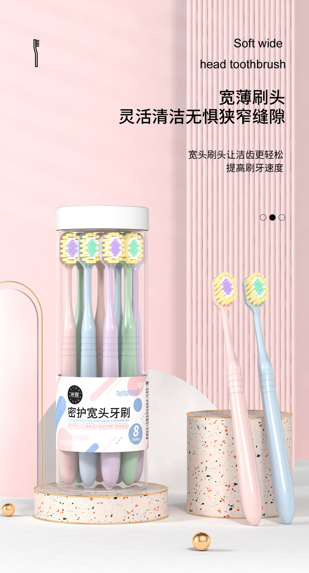 【宽薄刷头❗灵活清洁】无惧狭窄缝隙,成人软毛高端牙刷宽头深度清洁密植八支桶装多用牙刷。rh