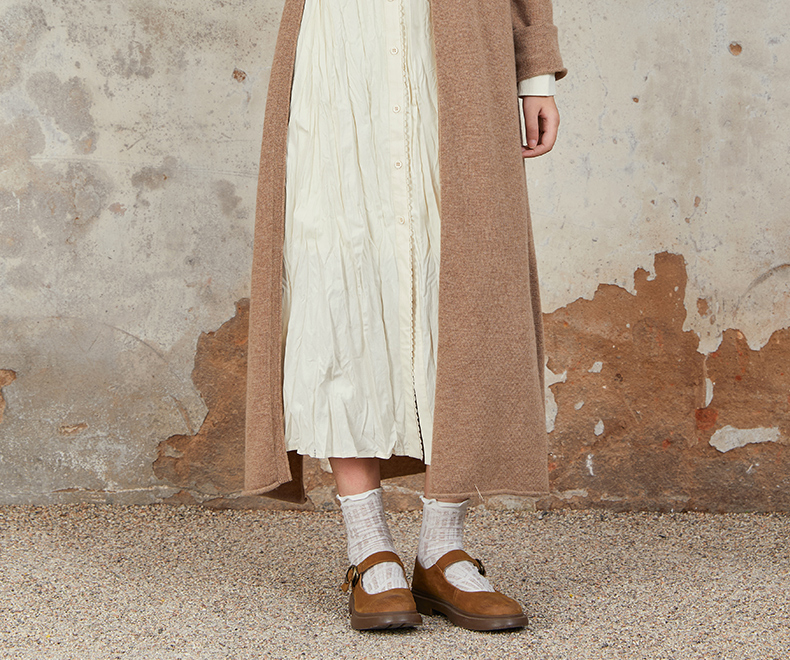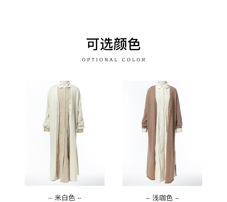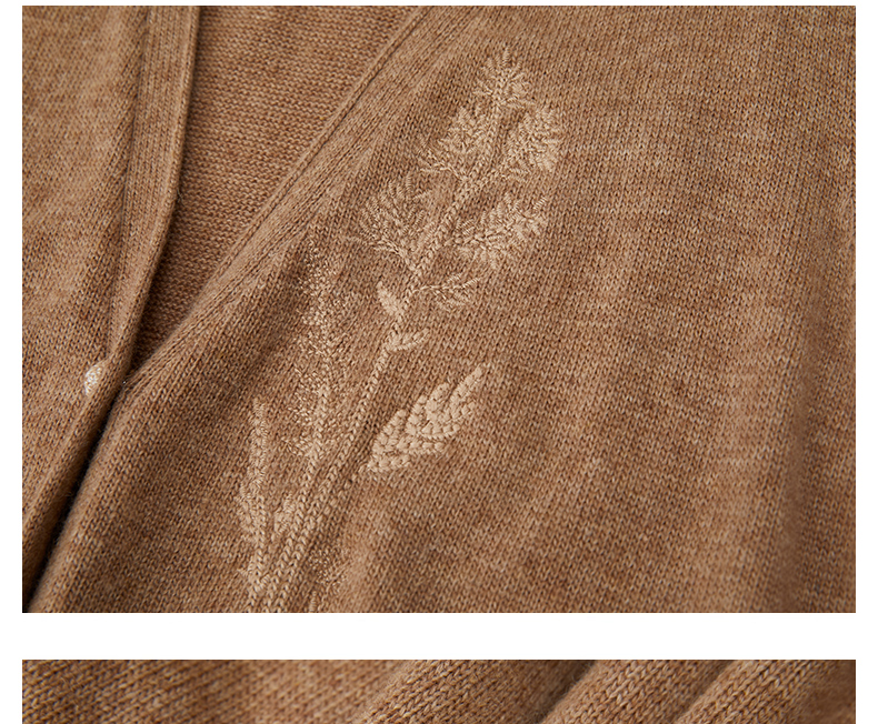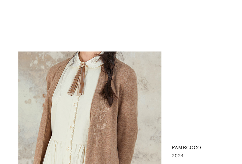 Famecoco范可儿开身毛衫长款含绵羊毛胸口刺绣纯色无领FAB6DF002