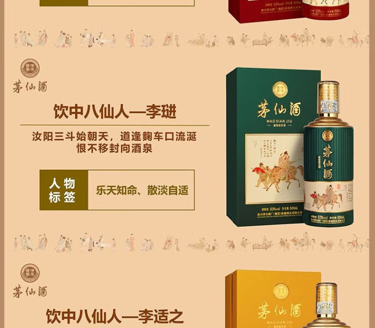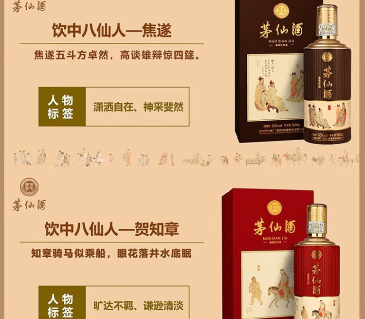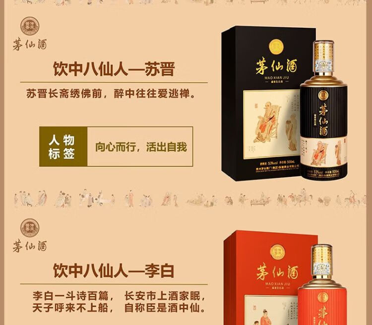 【2瓶】(千)53°茅仙酒饮中八仙酱香型白酒500ml/瓶