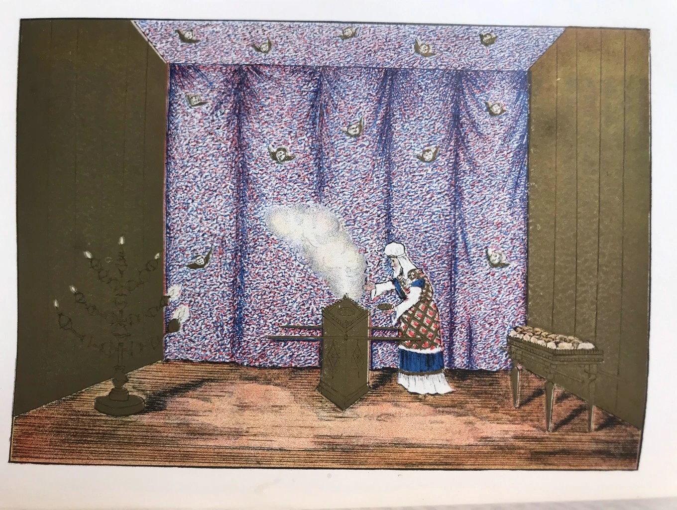 约19世纪后期 索尔陶《圣所,祭司与献祭》 配泥金彩色插图 漆布精装32开