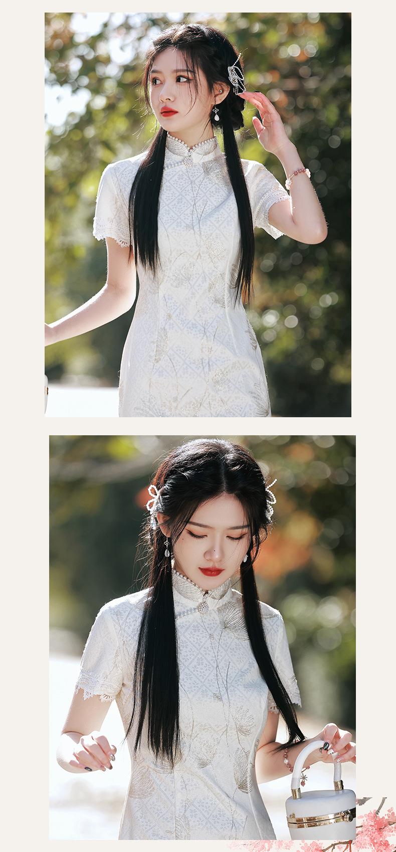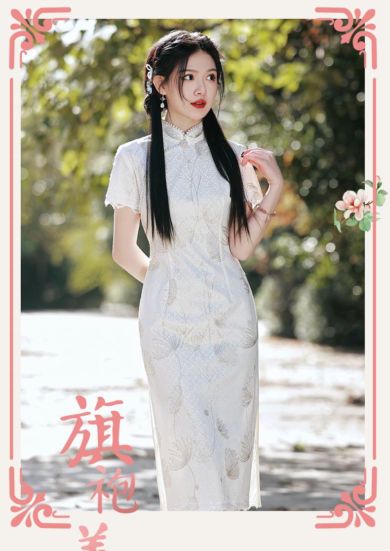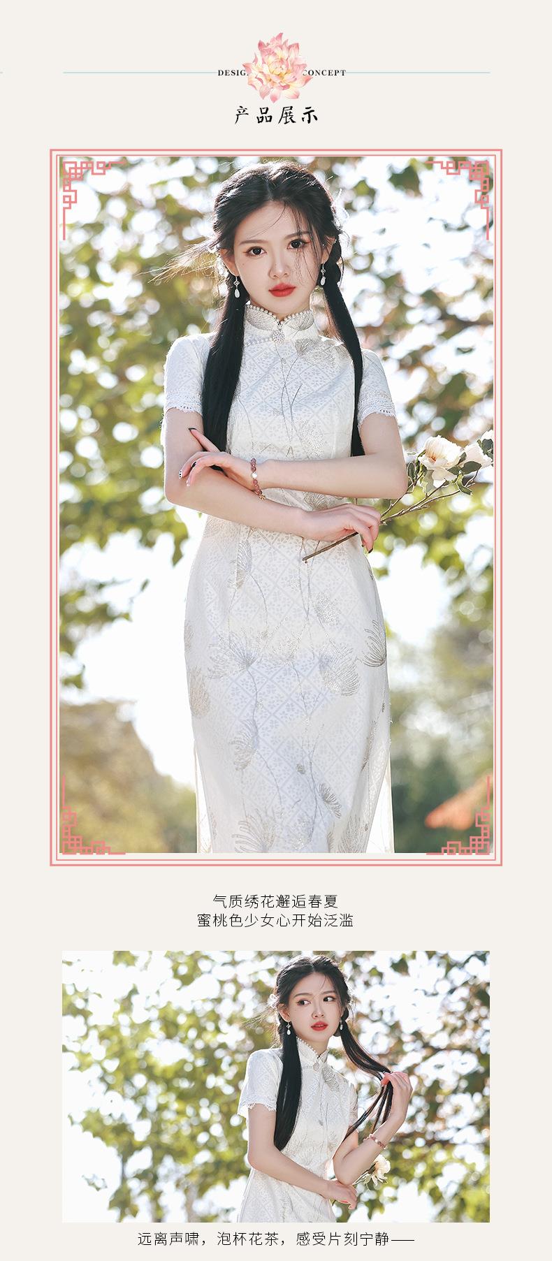 2023春夏新款花边复合蕾丝绣花旗袍连衣裙清新少女年轻款改良旗袍