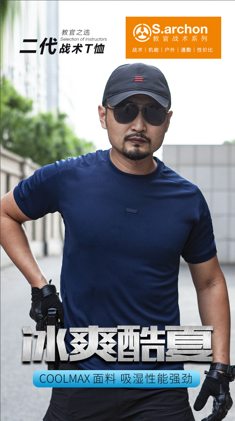 S.archon教官战术夏季速干T恤衫男户外运动圆领短袖特种兵半袖速干衣