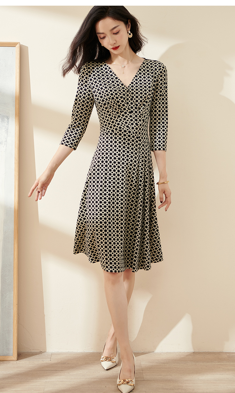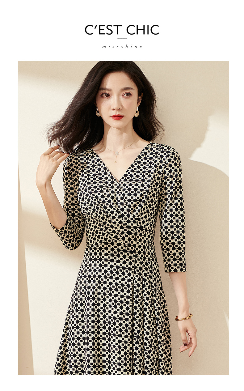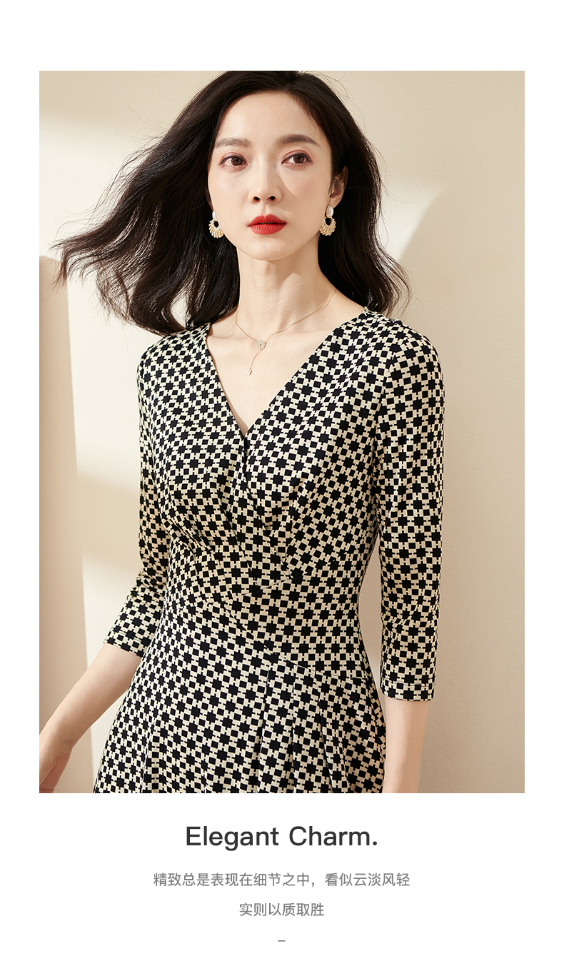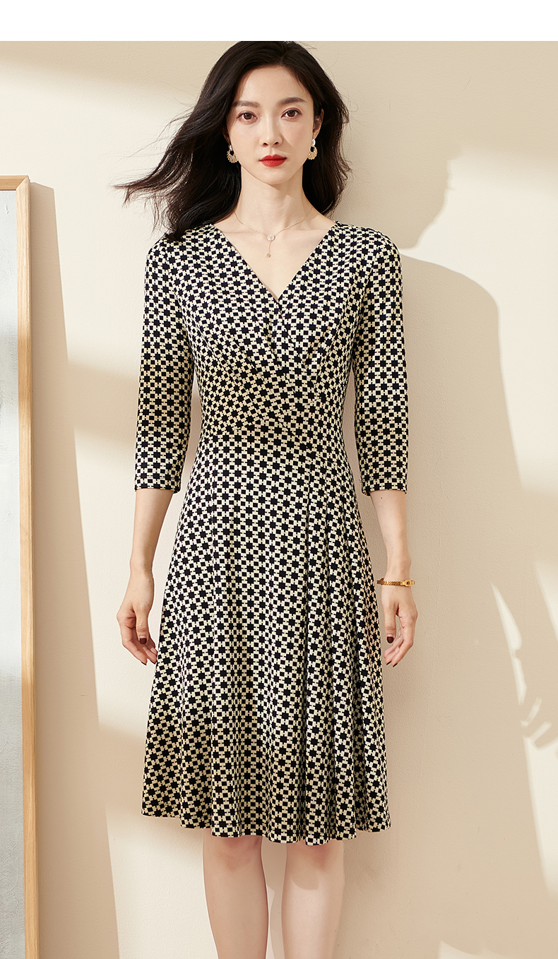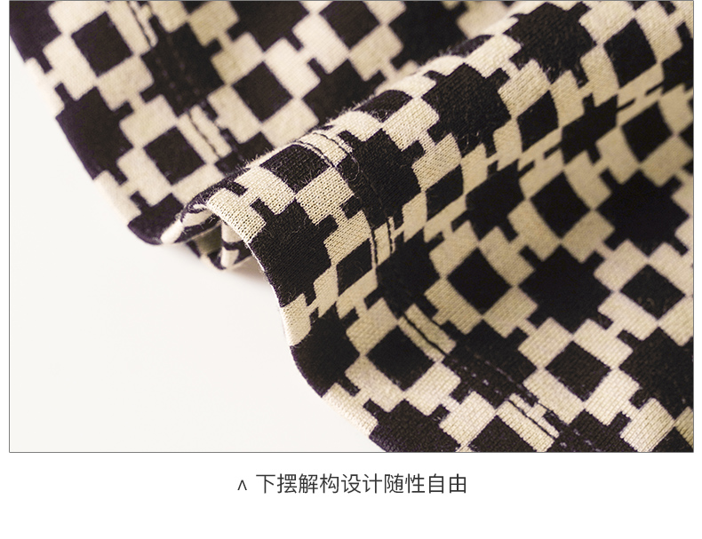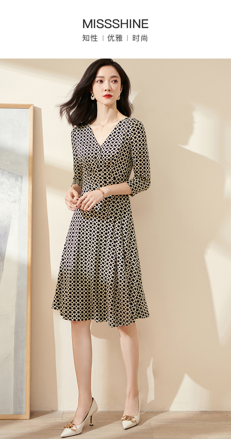 剩S 米思阳2025春季新款时尚经典耐看印花七分袖大摆针织连衣裙0488