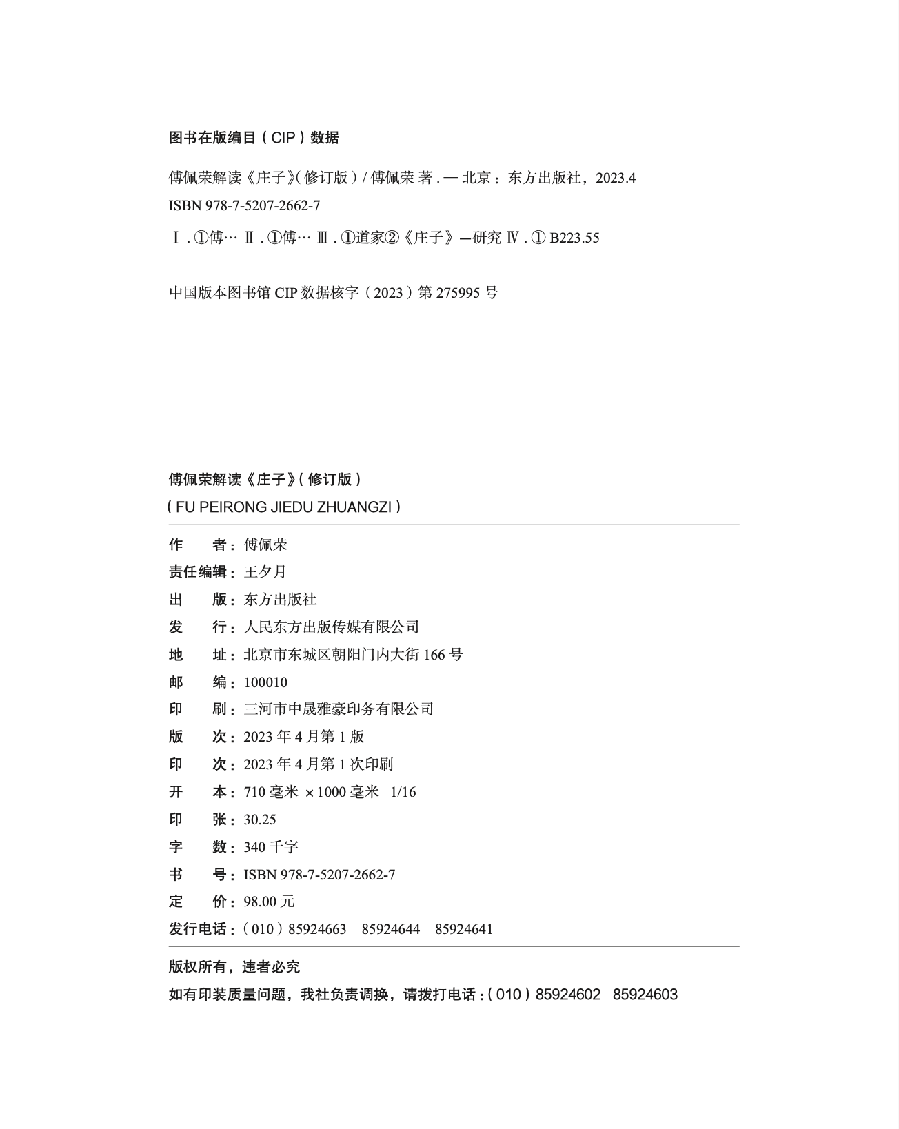 《傅佩荣解读庄子》2023年修订版
