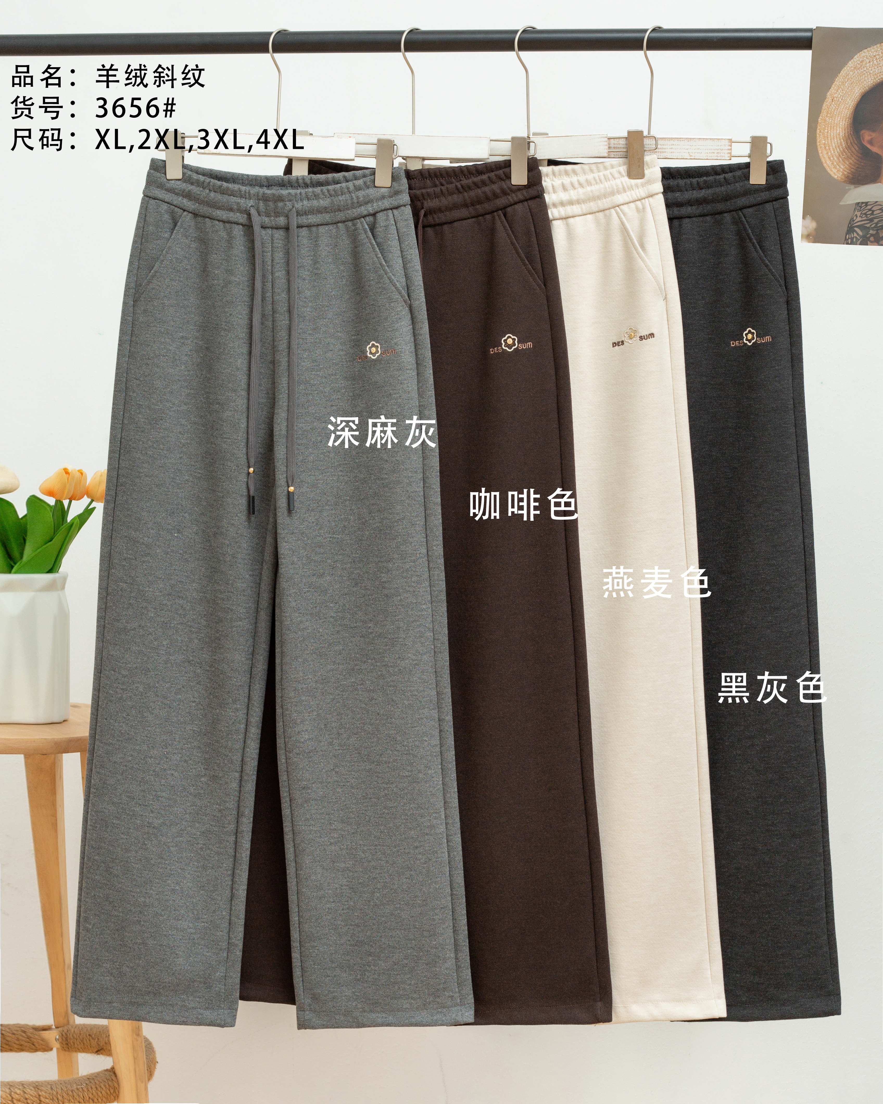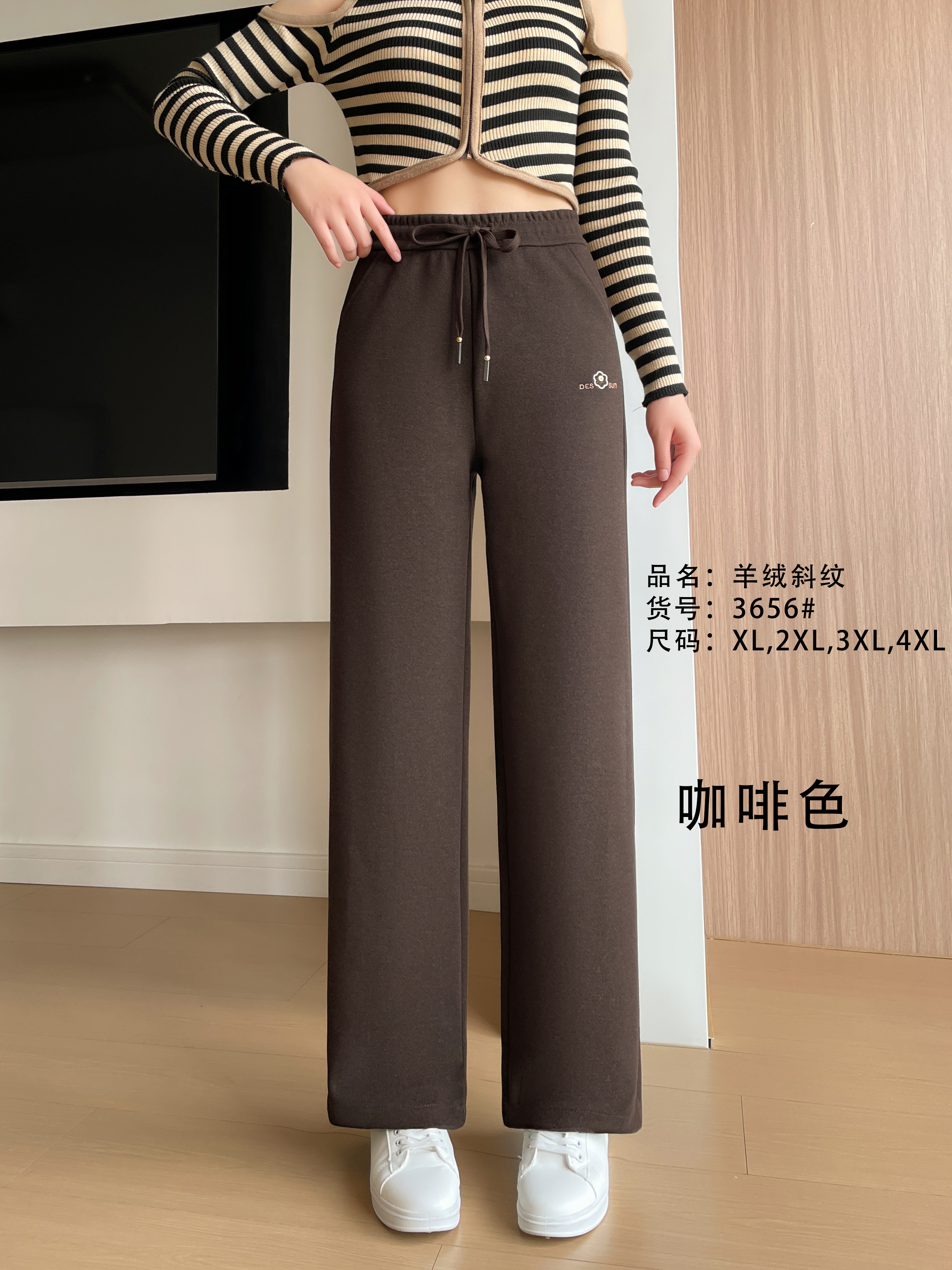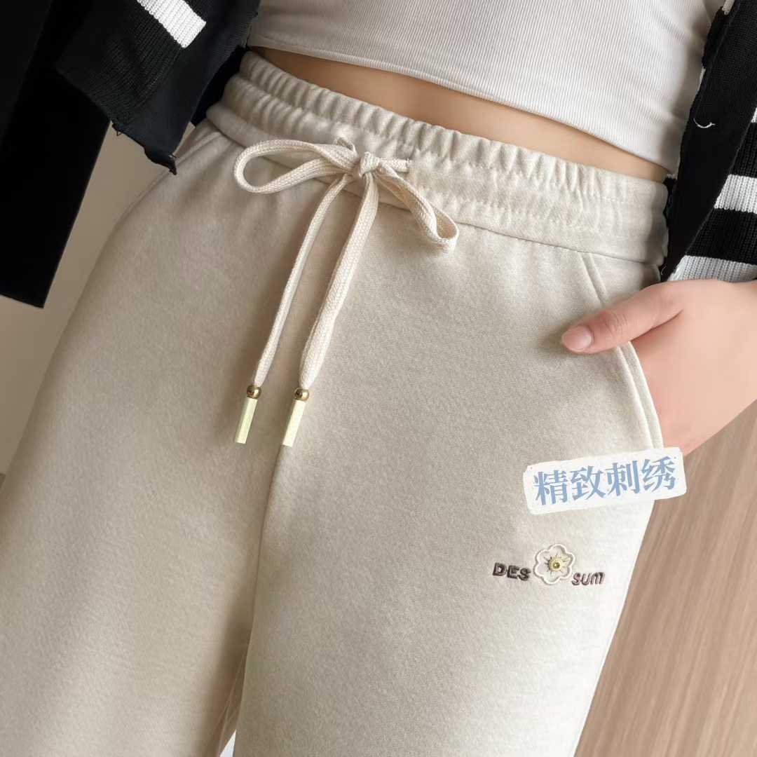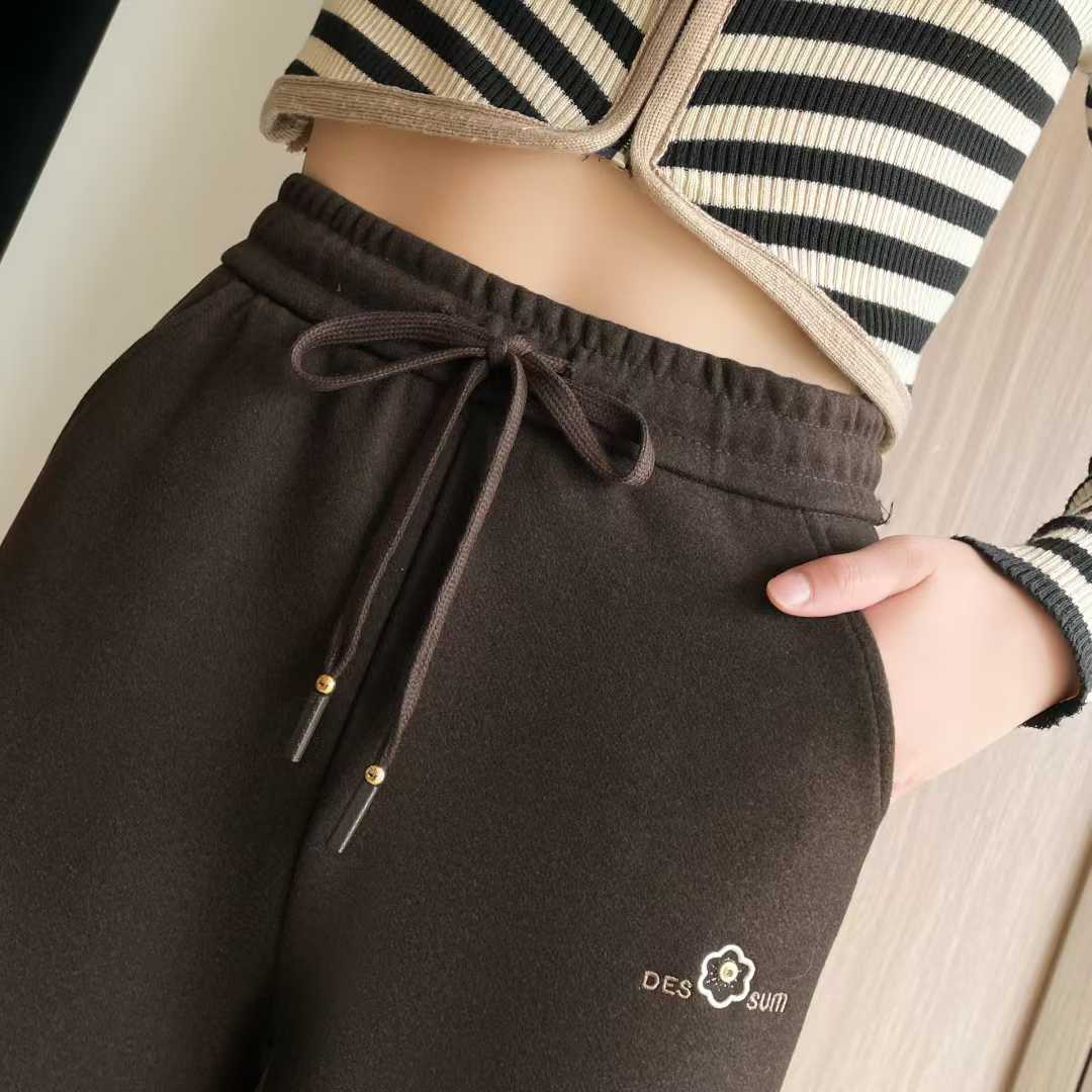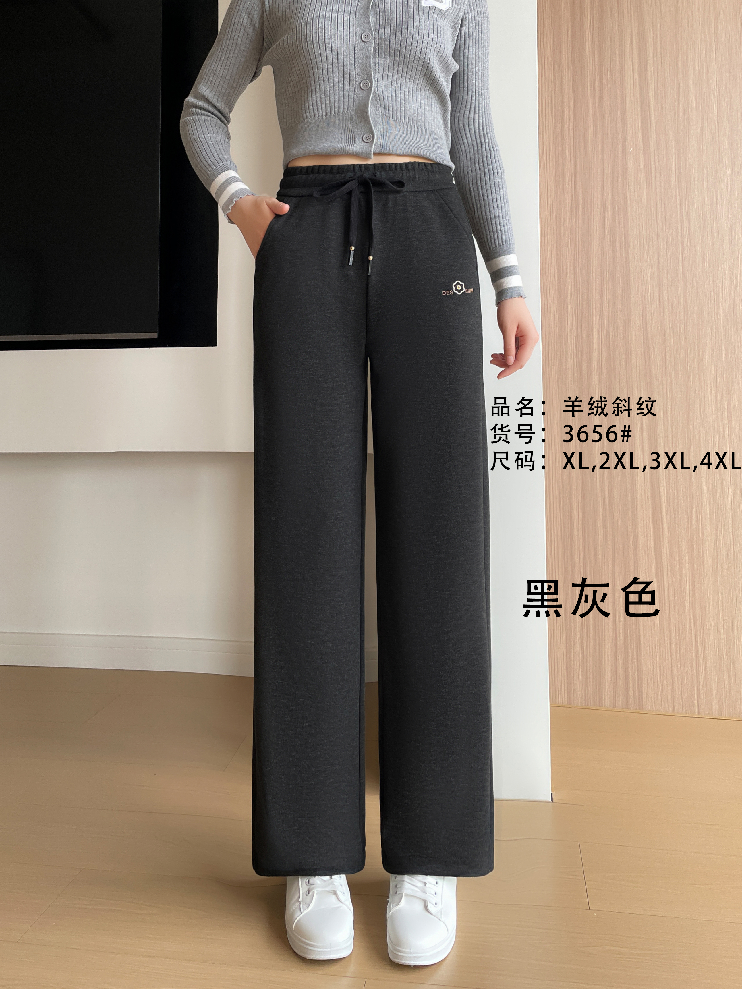 【YW】无忧购冬季加绒直筒保暖妈妈裤花朵刺绣宽松高腰长裤3657(截单后3-5天发货)