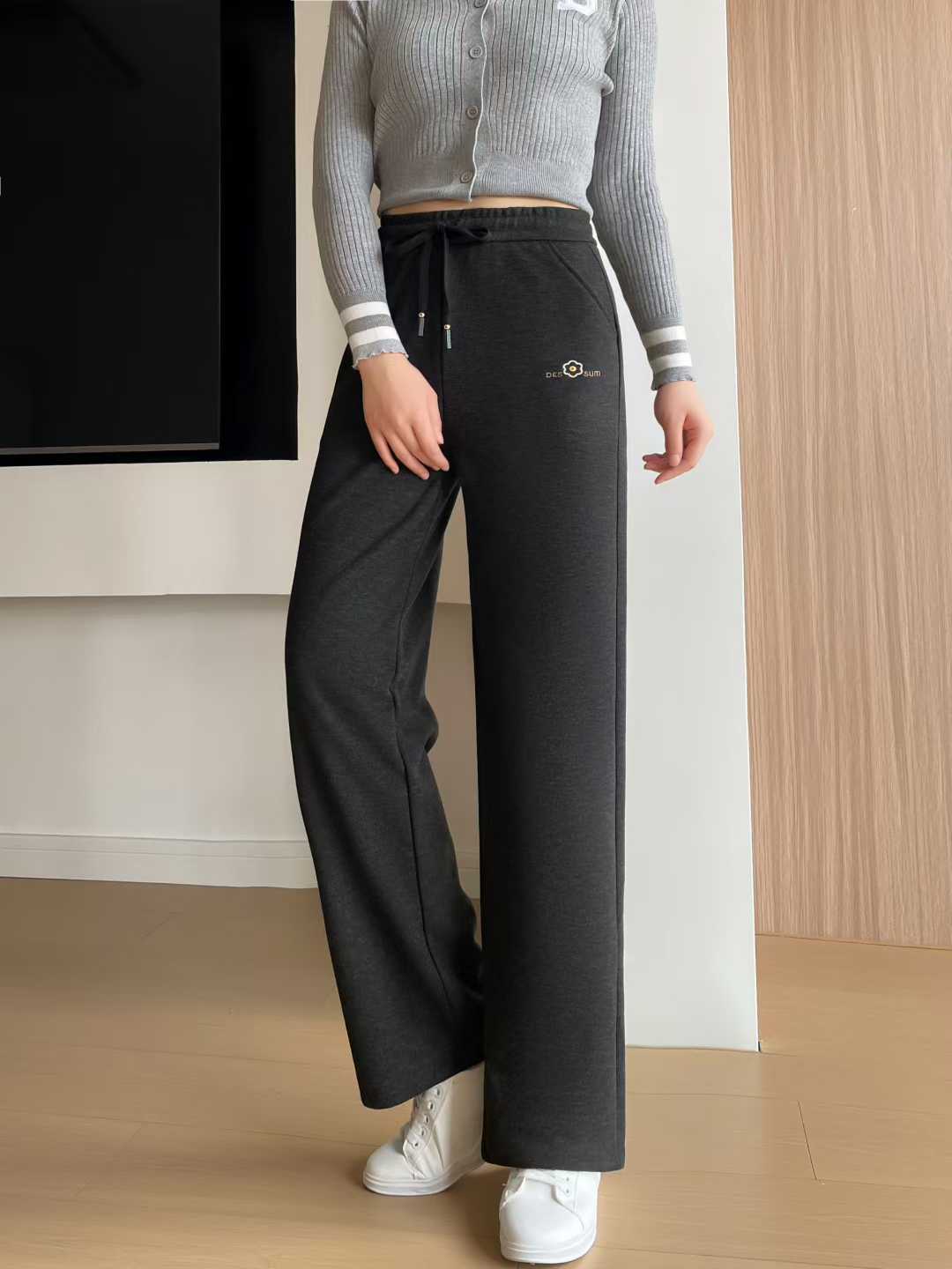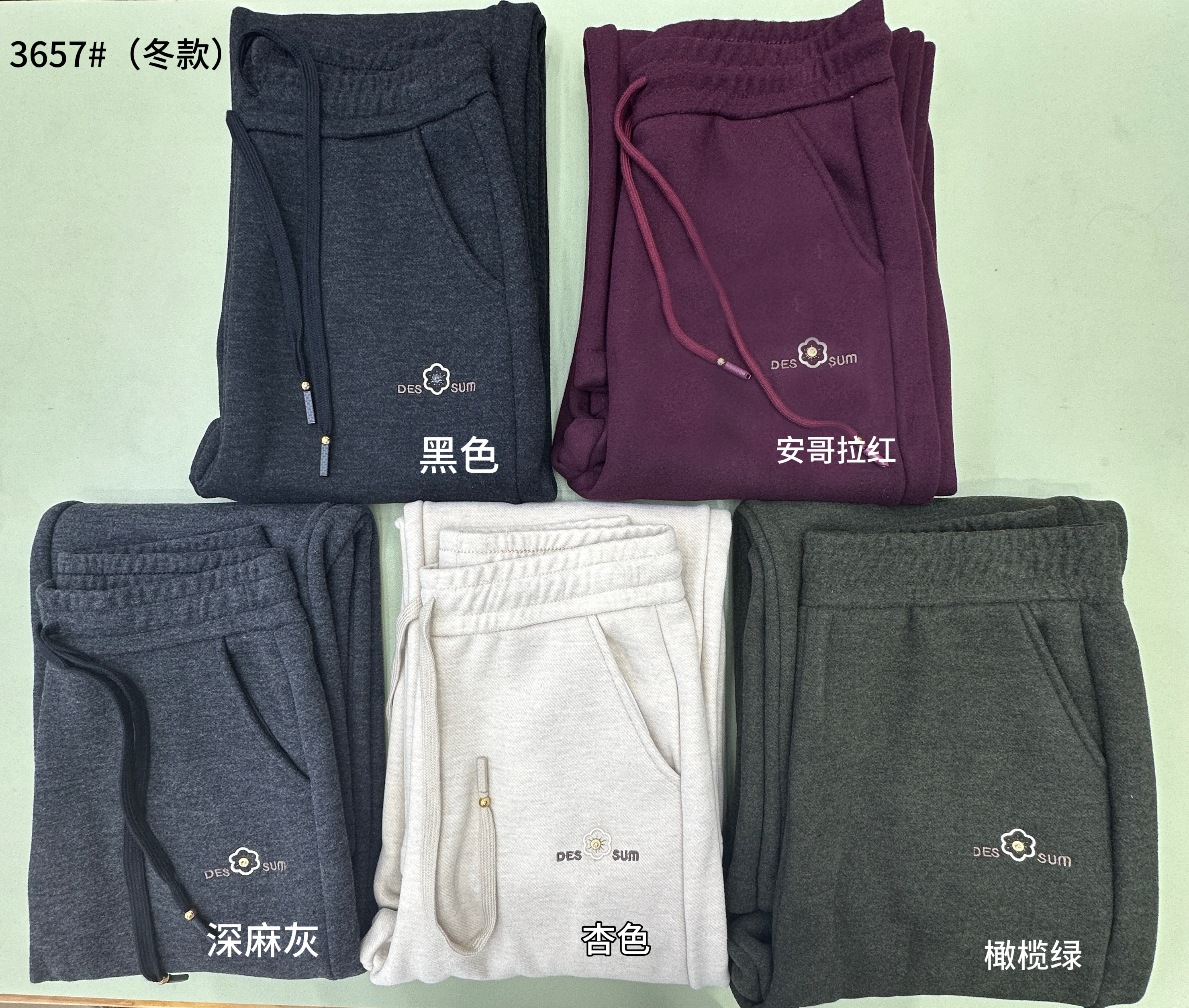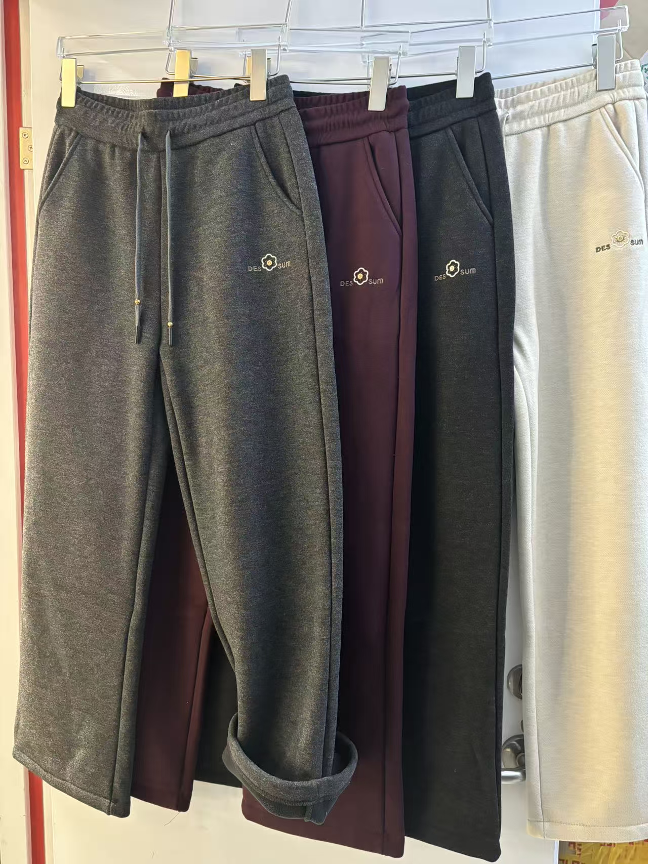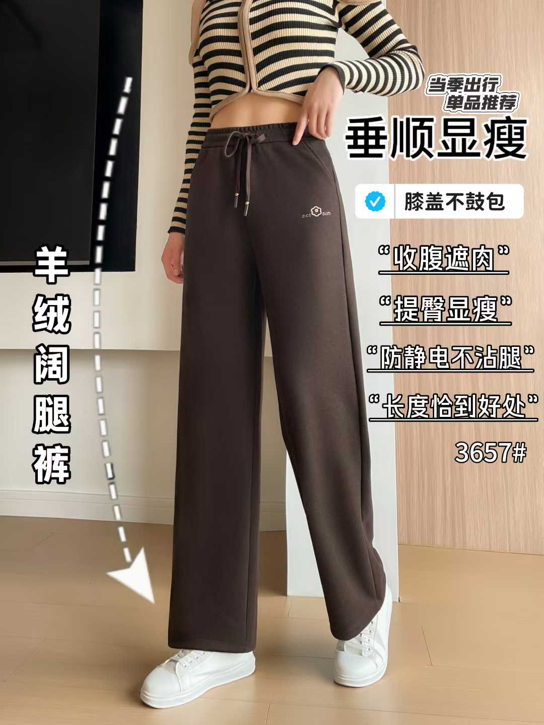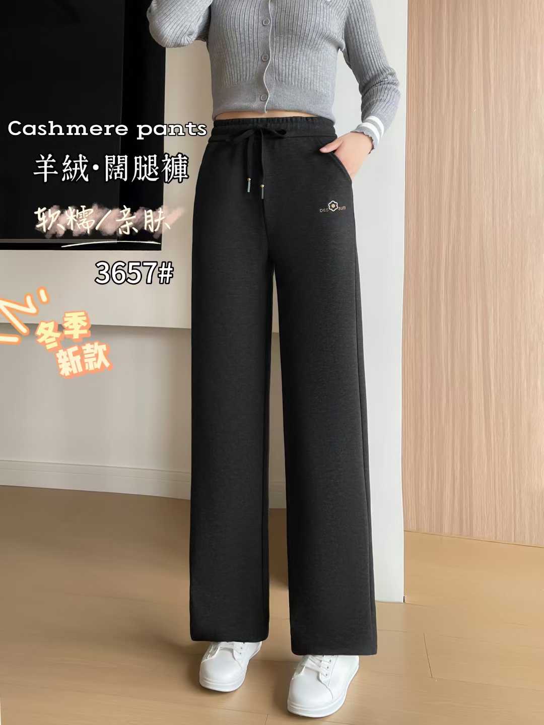 【YW】无忧购冬季加绒直筒保暖妈妈裤花朵刺绣宽松高腰长裤3657(截单后3-5天发货)