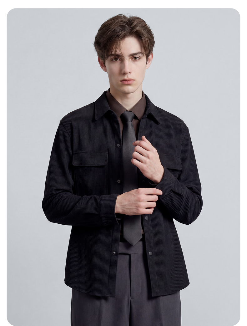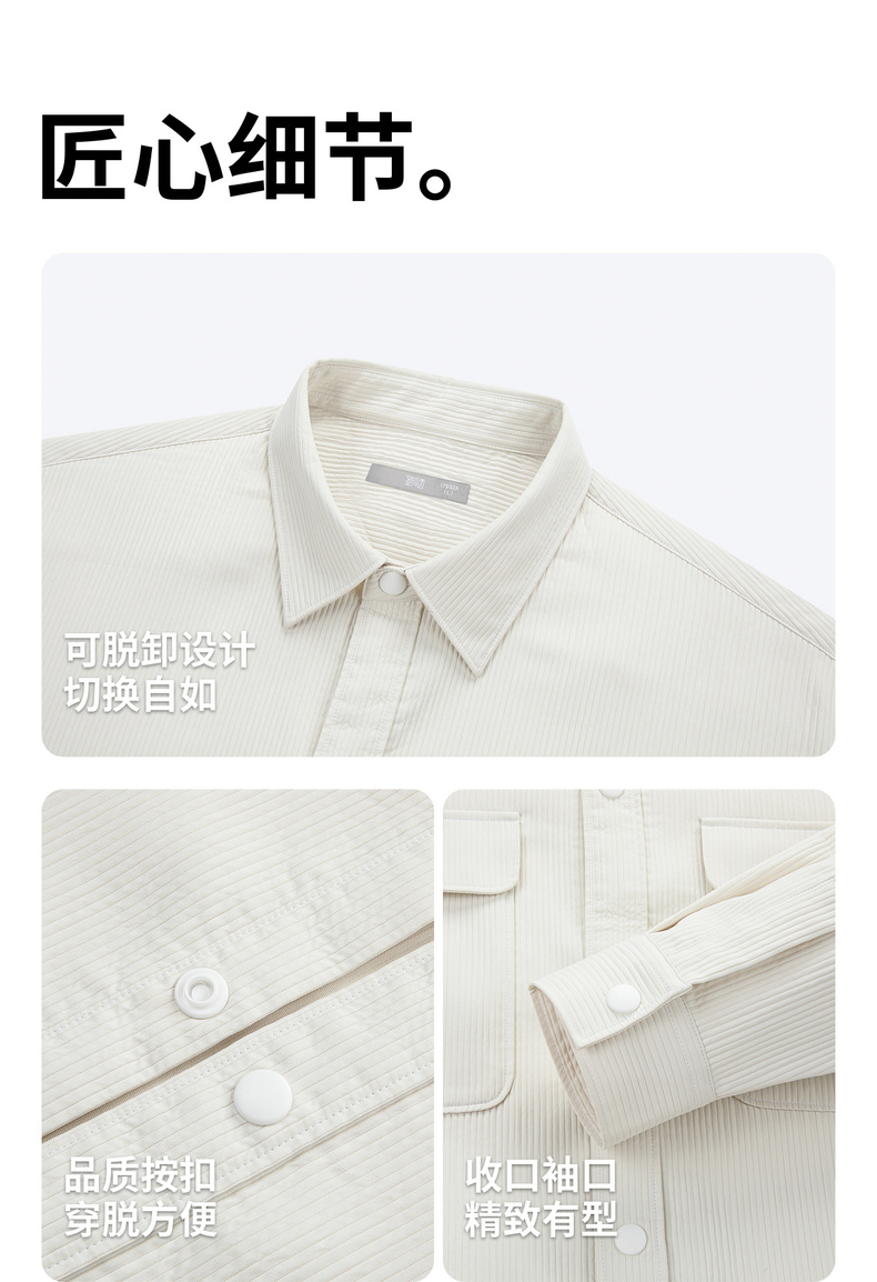 【加绒加厚】圣得西2025秋季新款保暖衬衫男长袖简约百搭方领衬衣