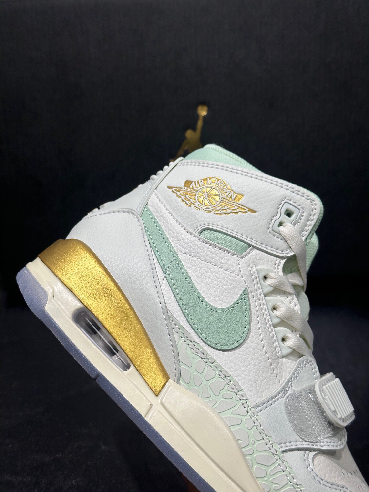 秋冬特惠💰440 Jordan Legacy 312 year of the tiger 虎年 减震 高帮复古篮球鞋 男款 薄荷绿 Air Jordan L egacy 312是Air Jordan品牌联合街头潮流设计师Don C共同打造,汇集Air Jordan 1、 AirJordan 3和1988年被乔丹短时间上脚过的Nike AirAipha Force Low三个经典鞋款的标志性细节,来诉说对家乡芝加哥的留恋,312也正是芝加哥的区号。Legacy 312融入了诸多经典元素鞋底、爆裂纹、后跟都颇具辨识度。鞋款本身拥有美式街头的粗犷同时细节精美又不失视觉层次感受颇具独特的潮流魅力。