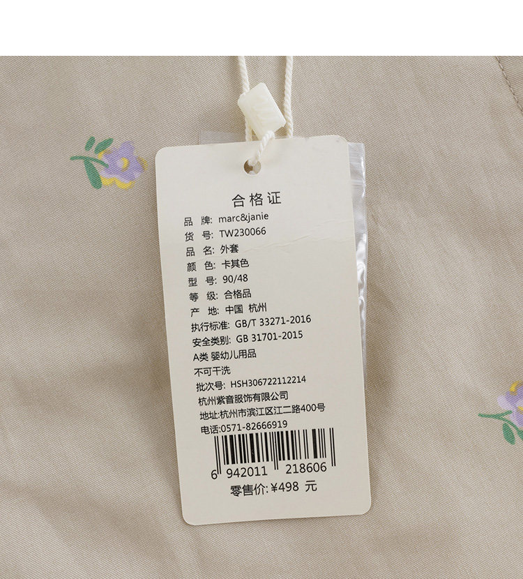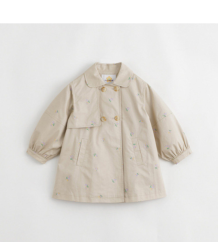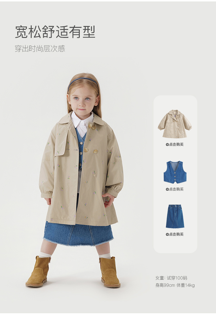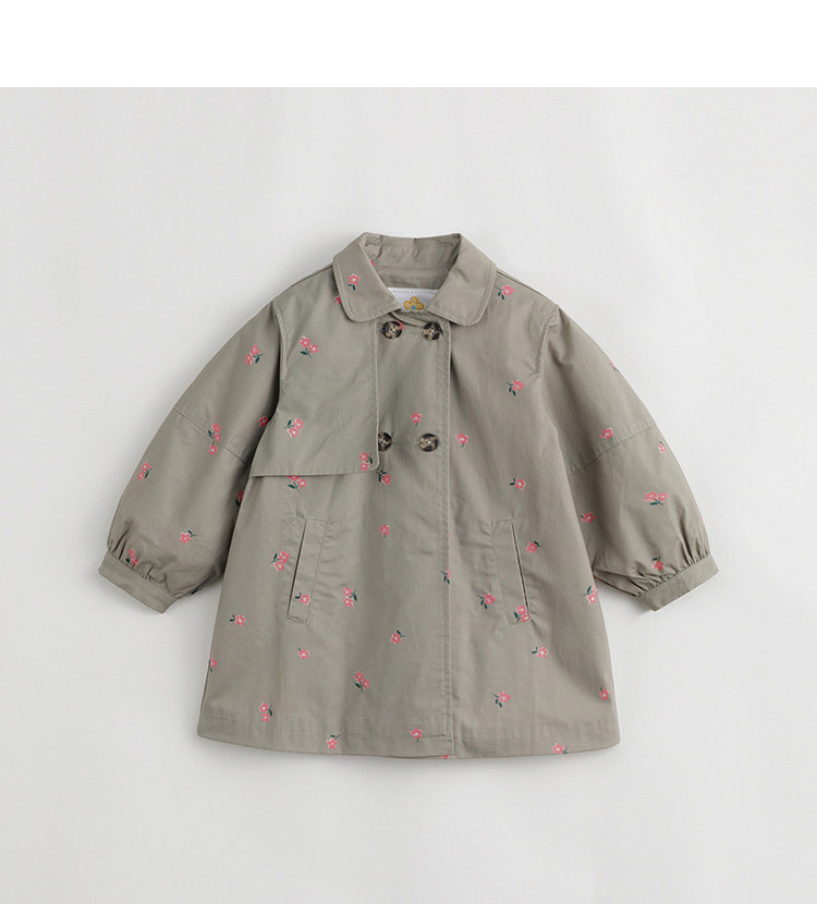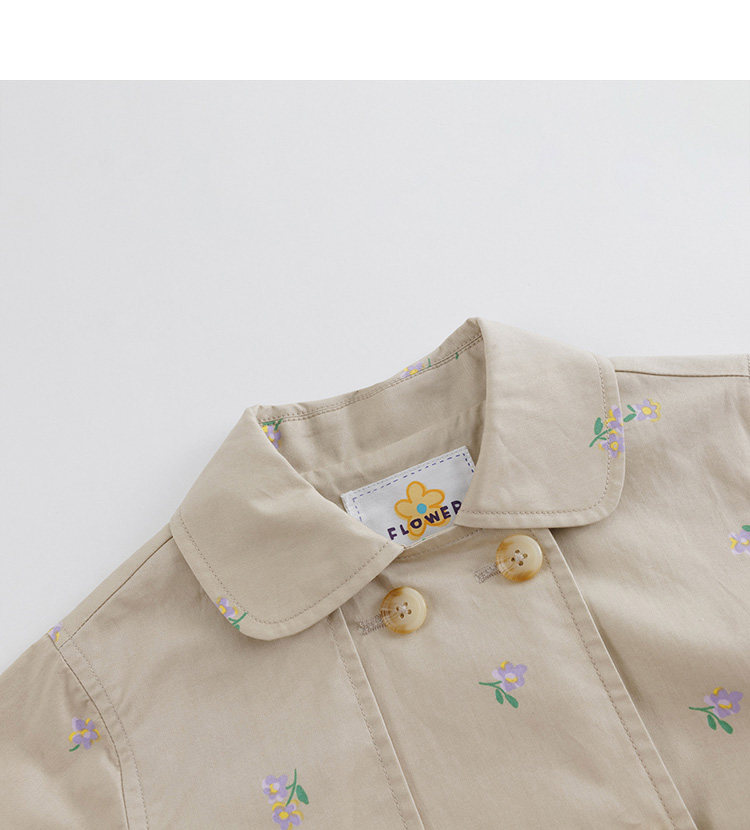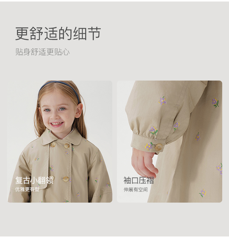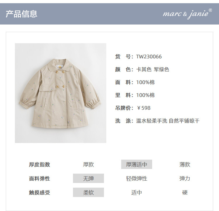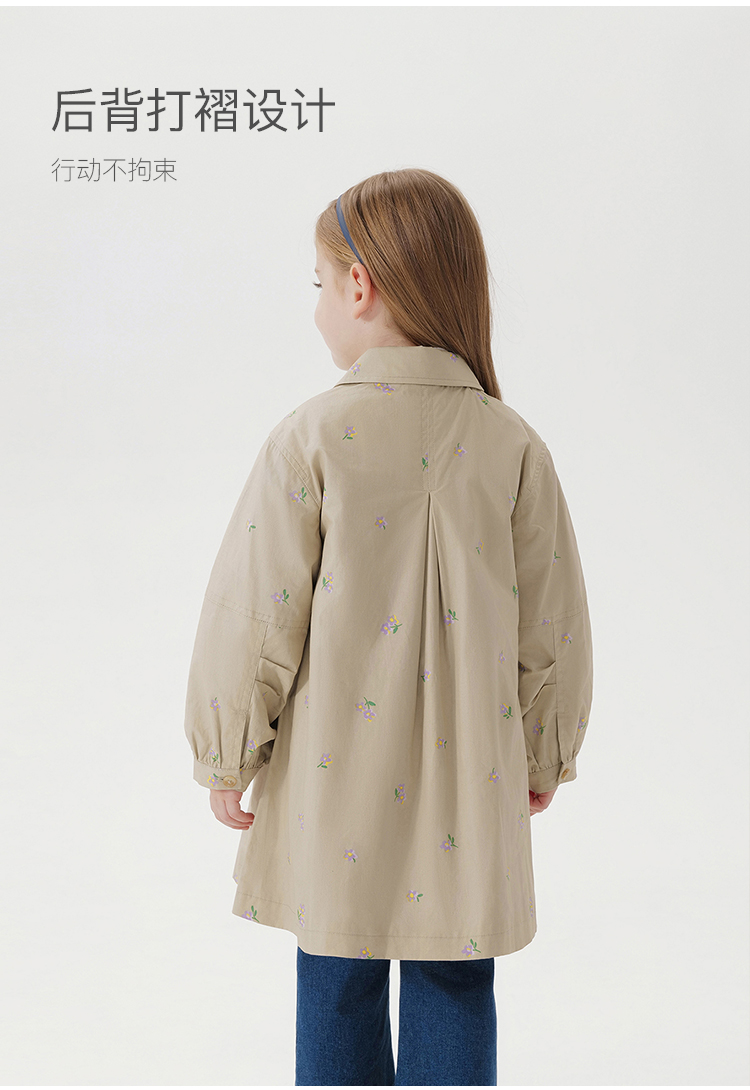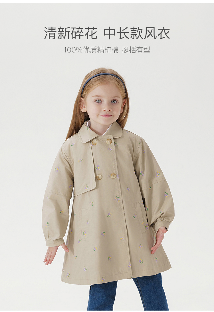 马克珍妮春装新款 女童田园风中长款全棉风衣 儿童外套230066