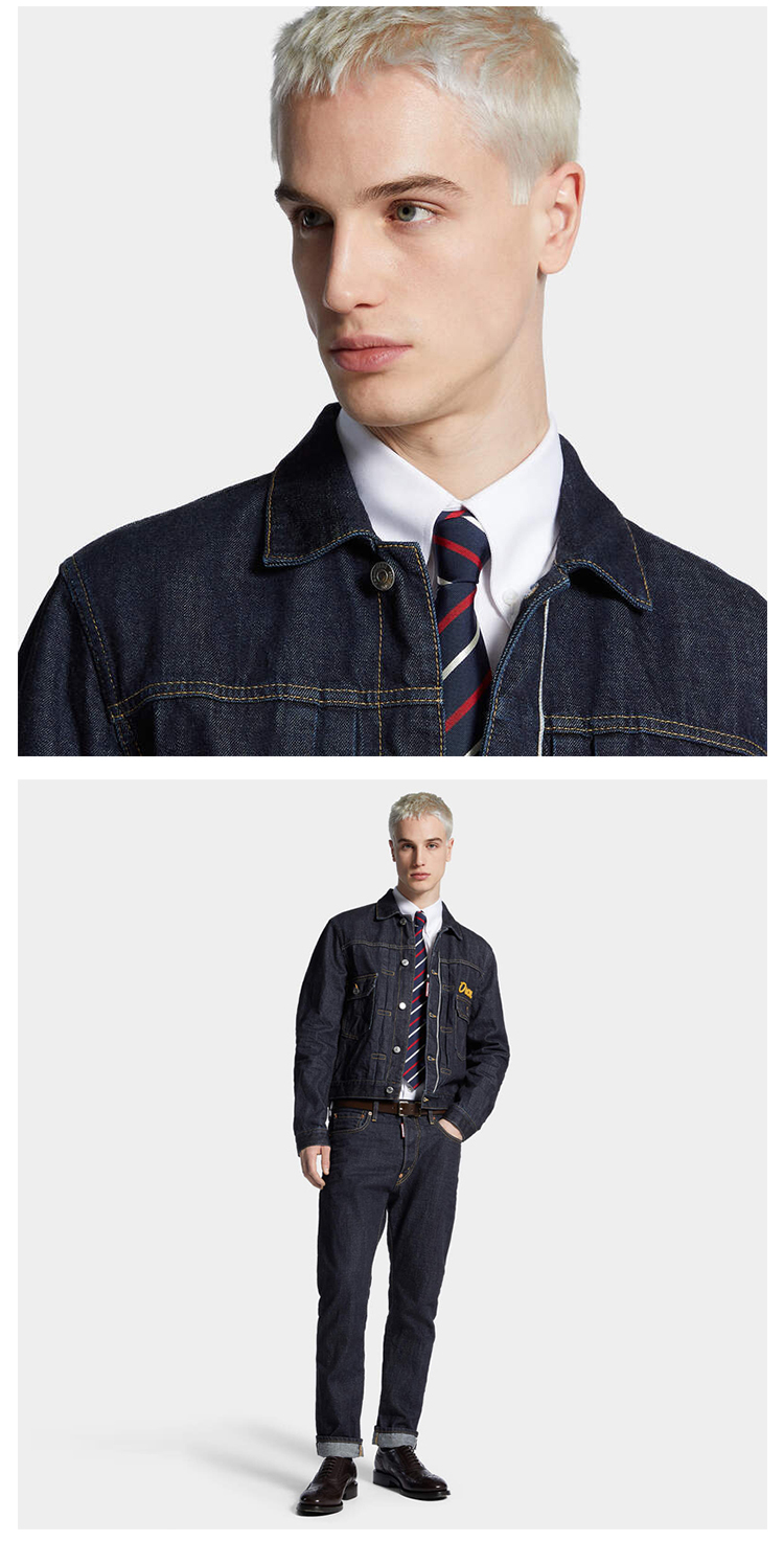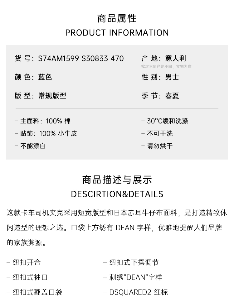 DSQUARED2 男士字母徽标刺绣牛仔夹克外套 蓝色 S74AM1599 S30833 470