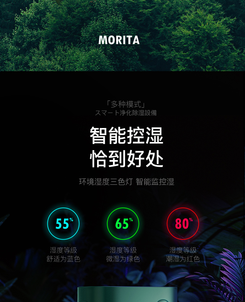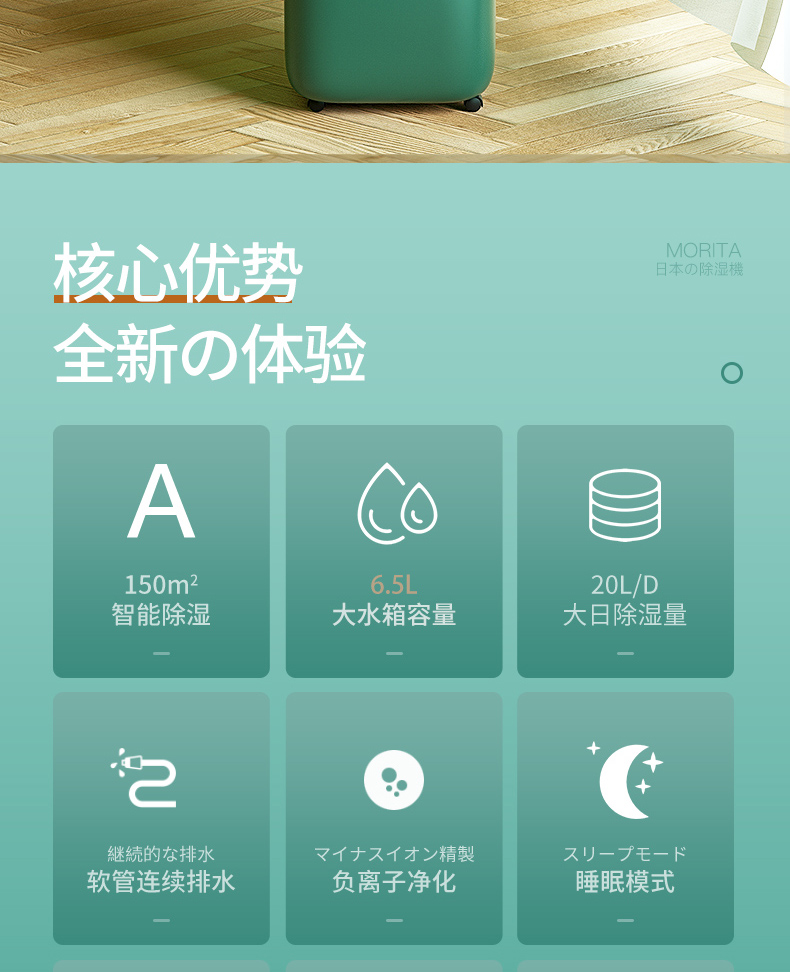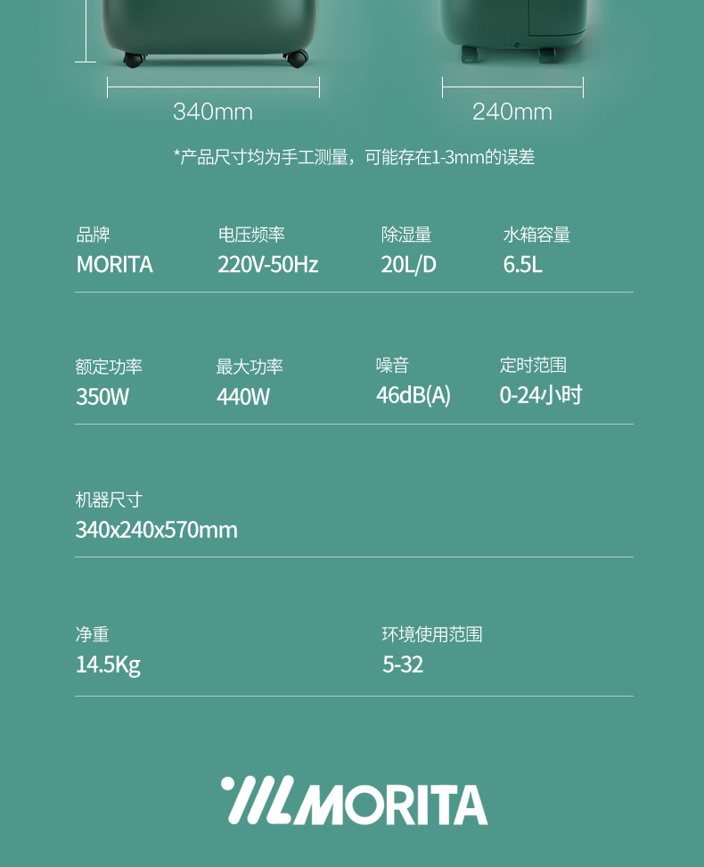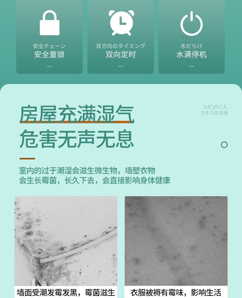 日本森田MORITA除湿机家用抽湿机回南天室内防潮去湿器干燥机除潮吸湿去潮抽湿器20L天除湿量