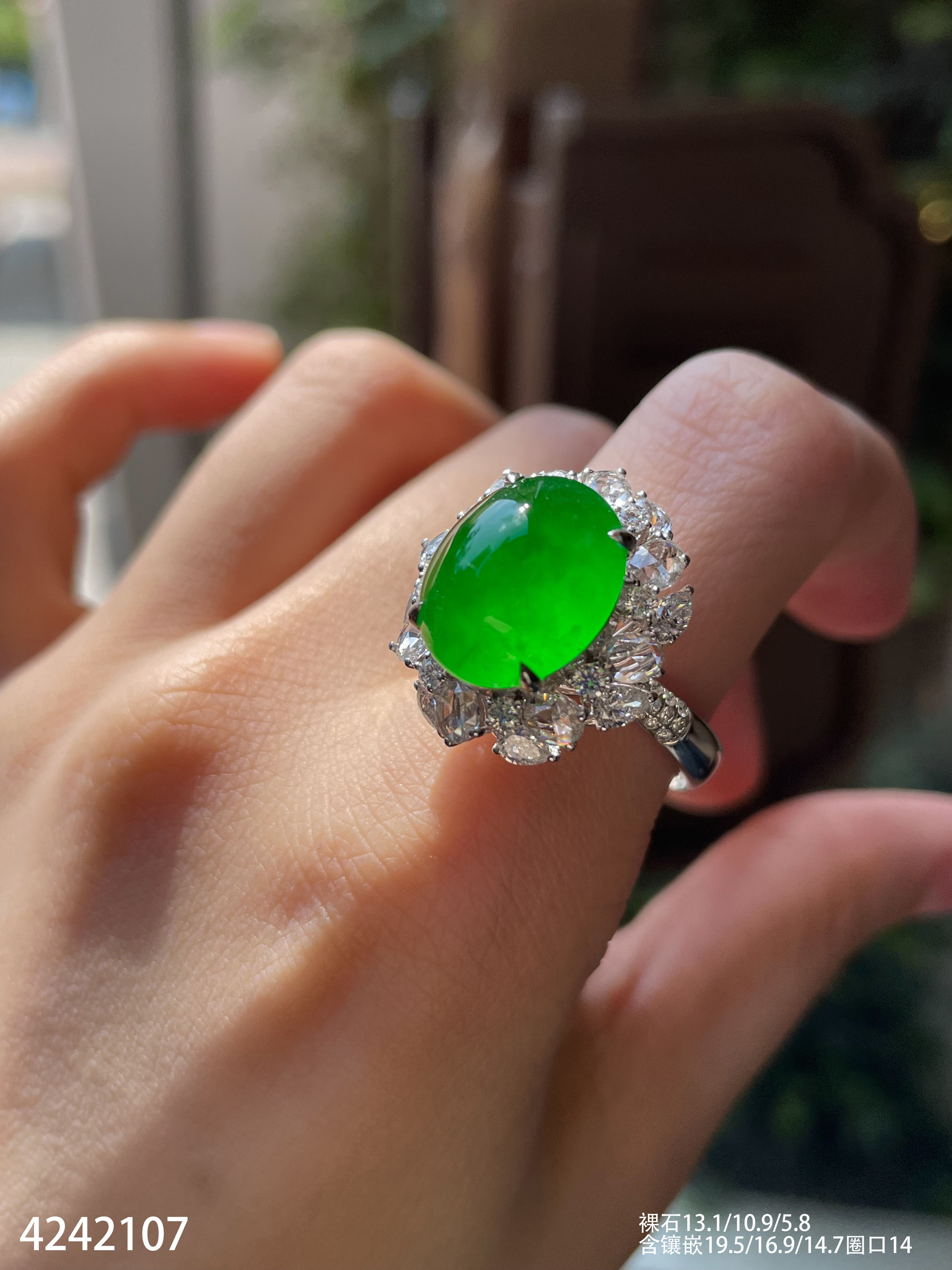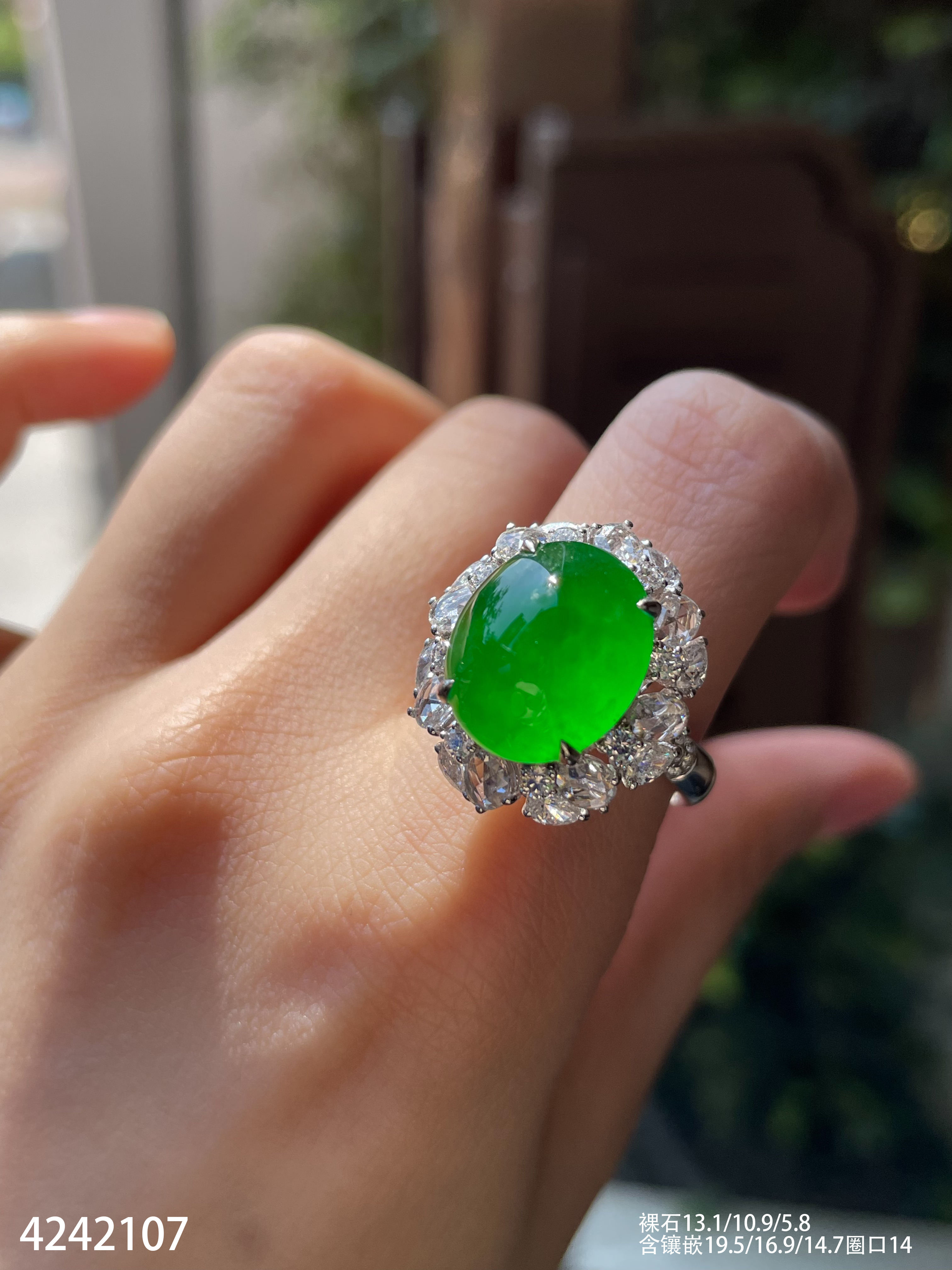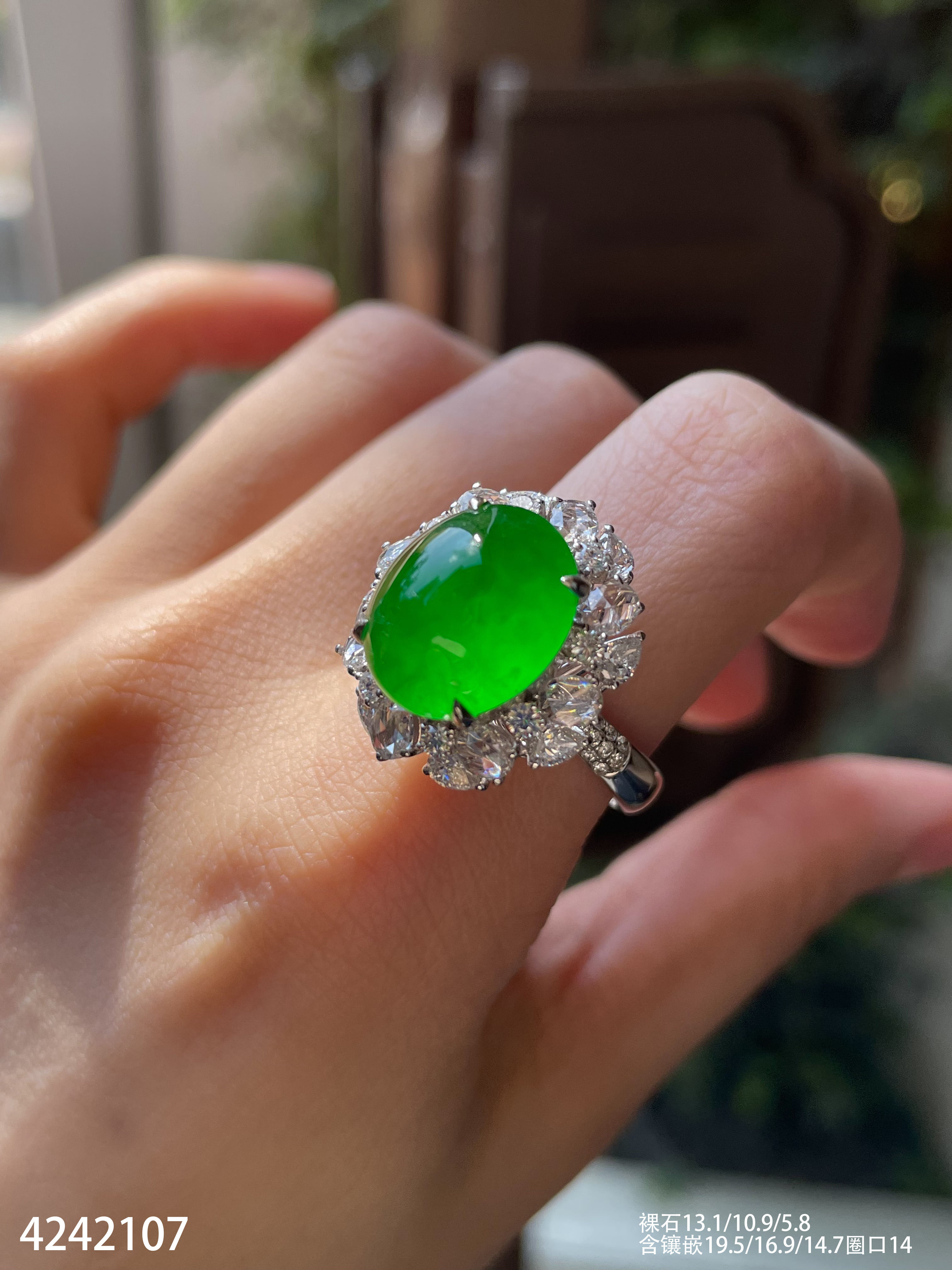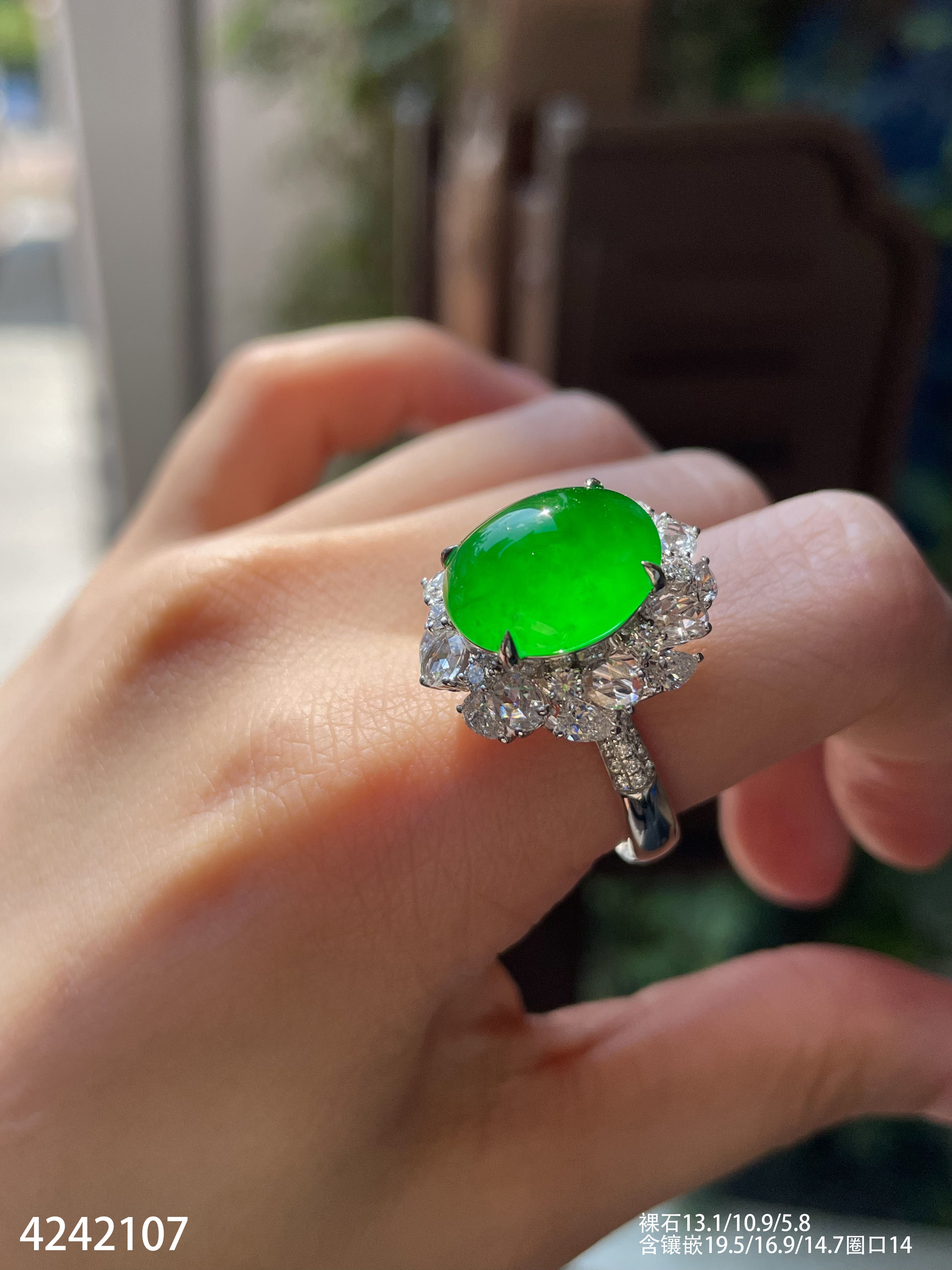艳绿蛋面戒指【4242107】具体价格微信咨询