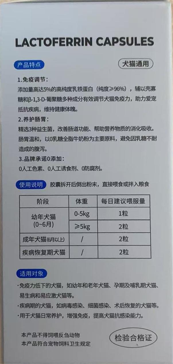贝可益-乳铁蛋白胶囊(10g)0.5g*20粒/盒 有效期2027年7月11日 原料组成:全脂牛奶粉(0乳糖)、葡萄糖。