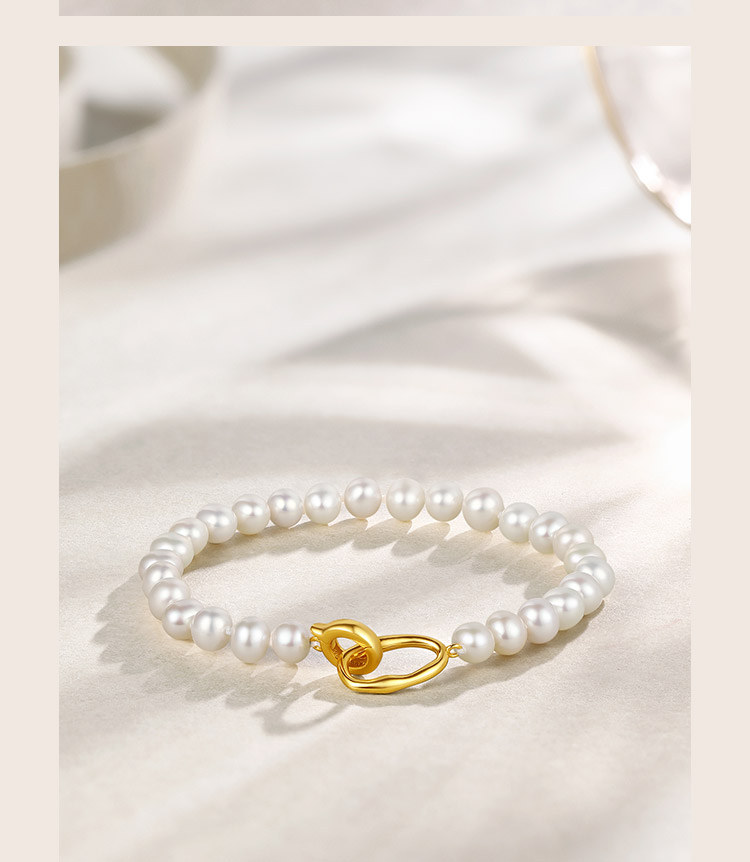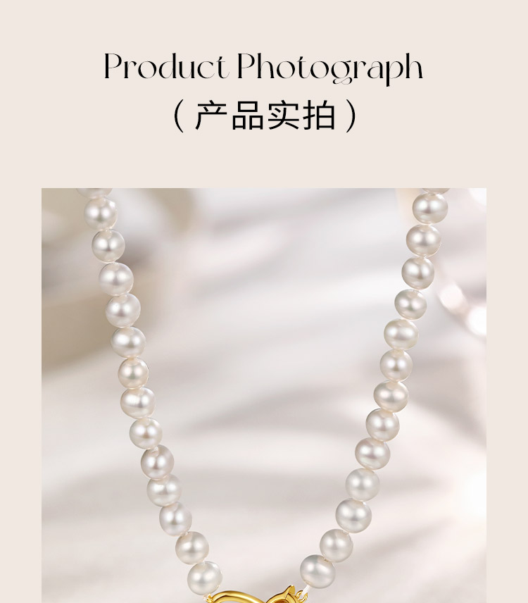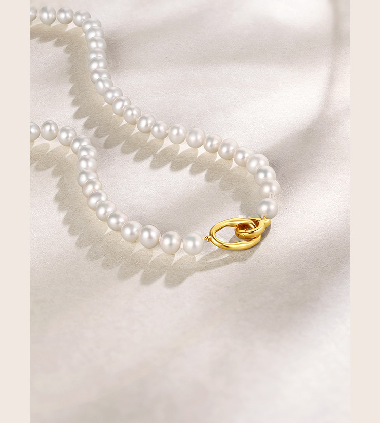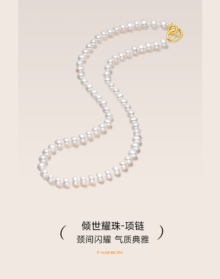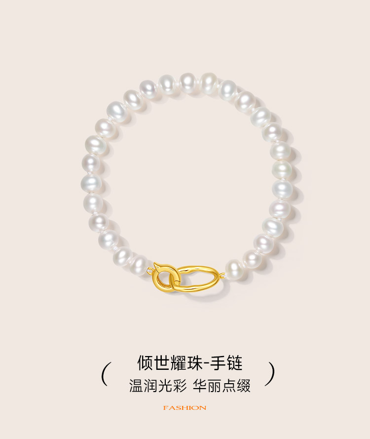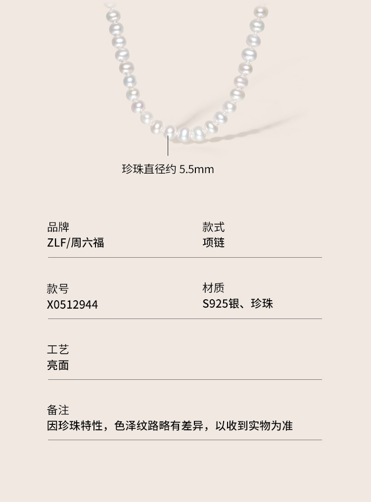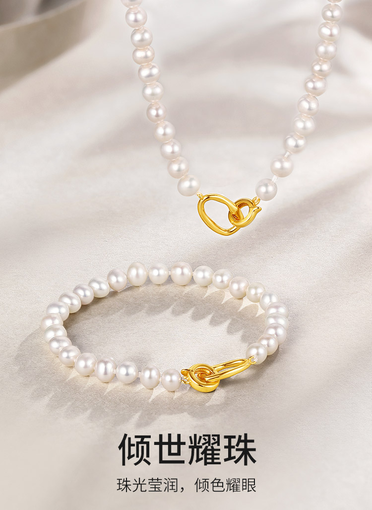 周六福珍珠手链女淡水珍珠项链套装项链优雅银扣子手串送女友礼物