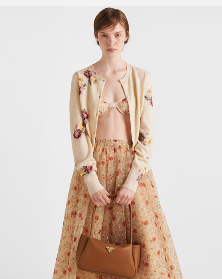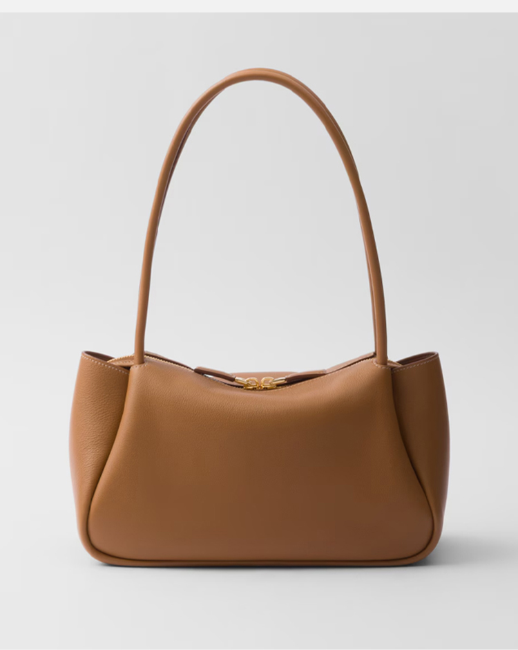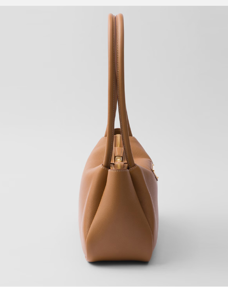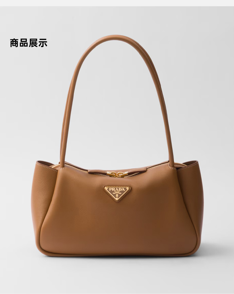 PRADA 普拉达 女士珐琅金属三角形徽标中号皮革手提包 驼色 1BA444 2CYS F03BH OVX