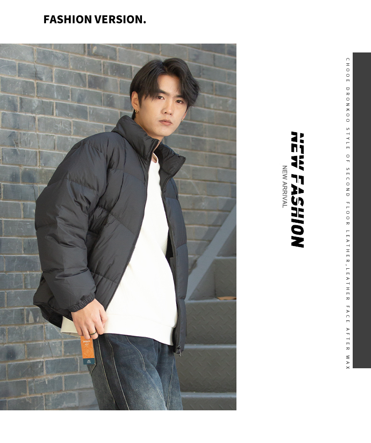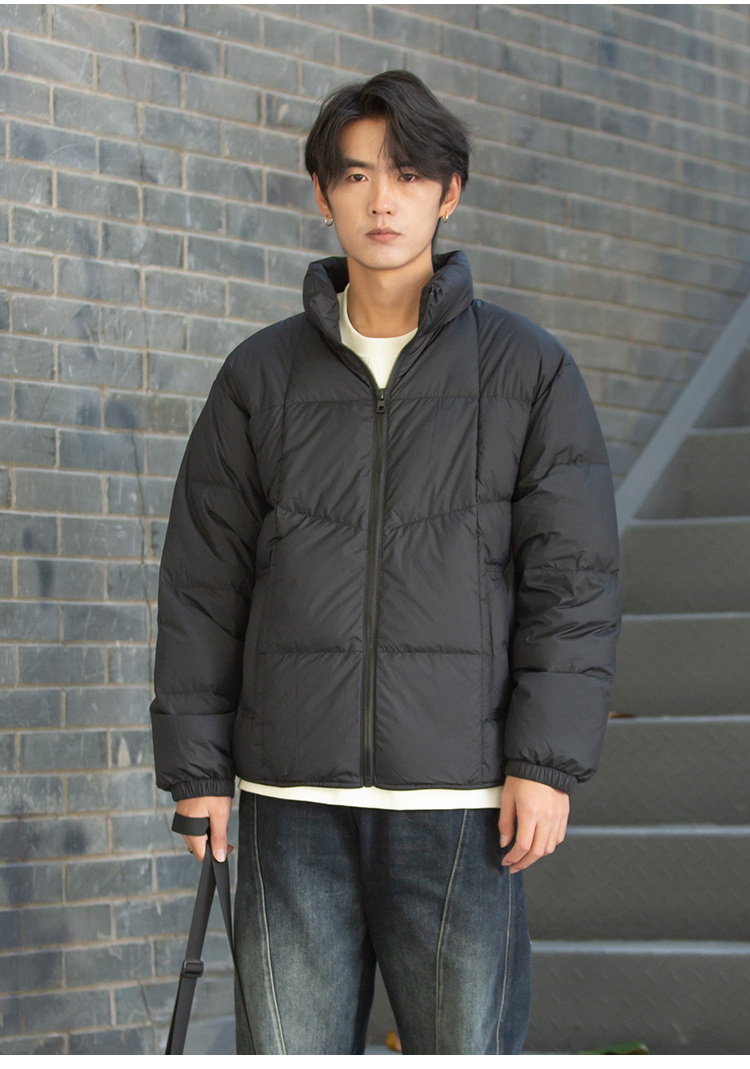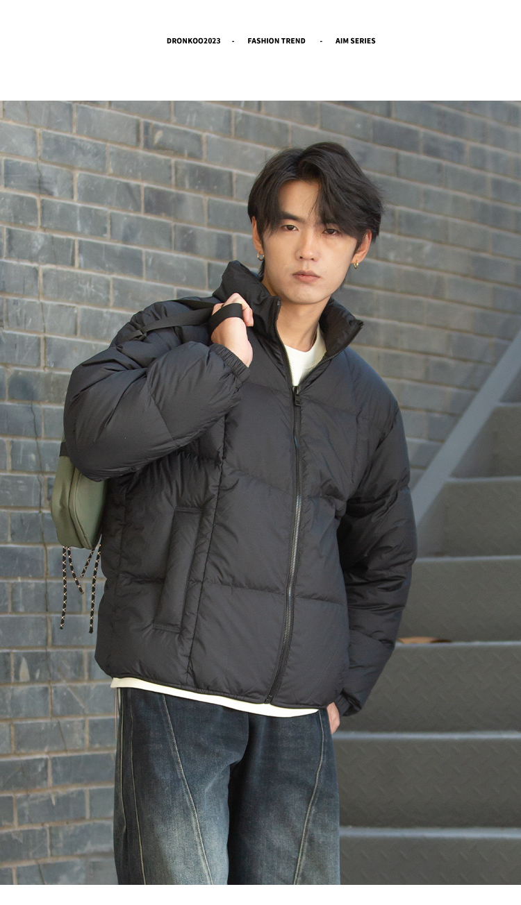 DRONKOO 2025 立领下摆橡筋织带绗缝基础短款厚羽绒服