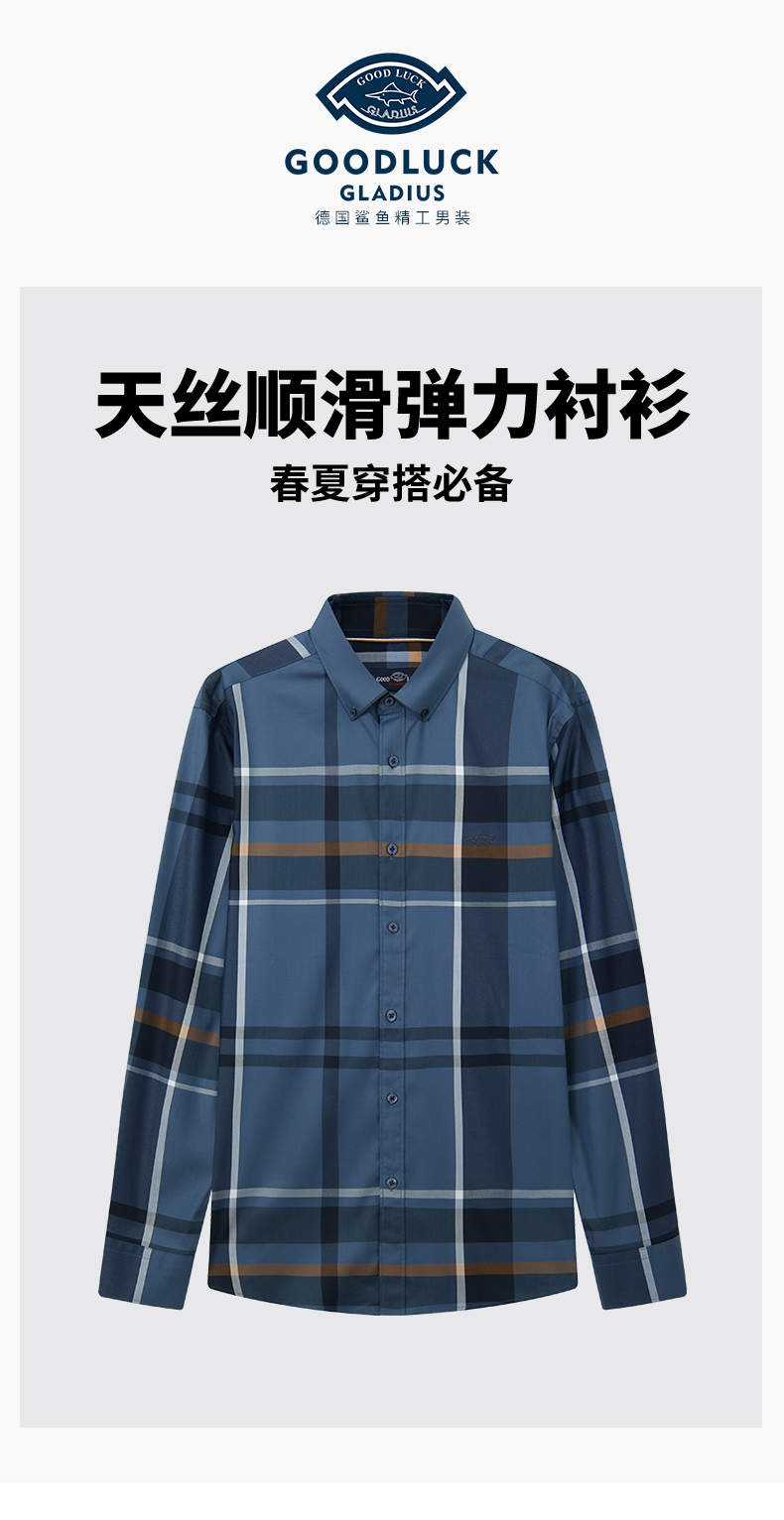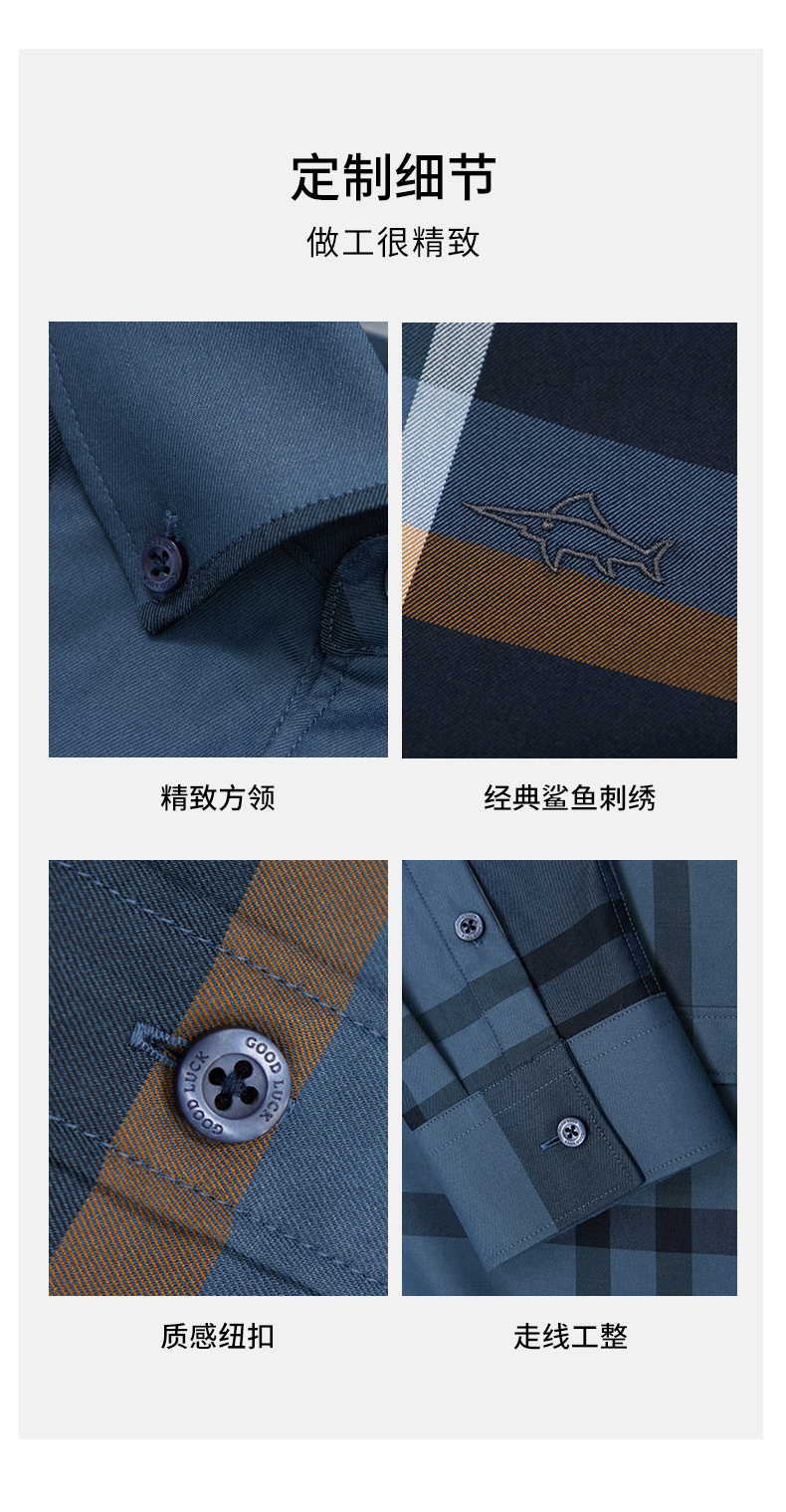 【莱赛尔】德鲨长袖衬衫男2026春季新款条纹撞色休闲衬衣