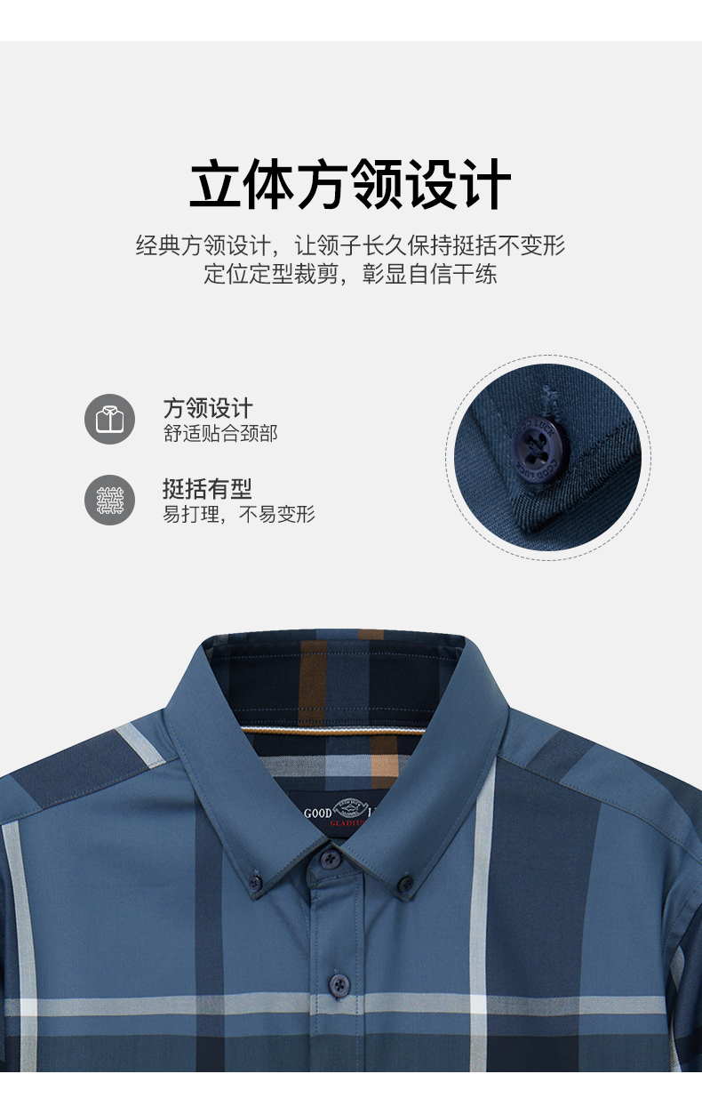 【高弹】德鲨休闲短袖格子衬衫男青年2026夏新款打底上衣弹力衬衣