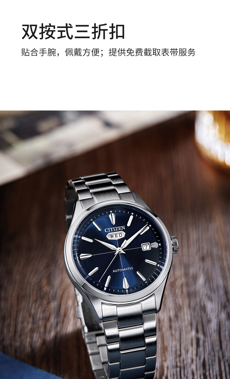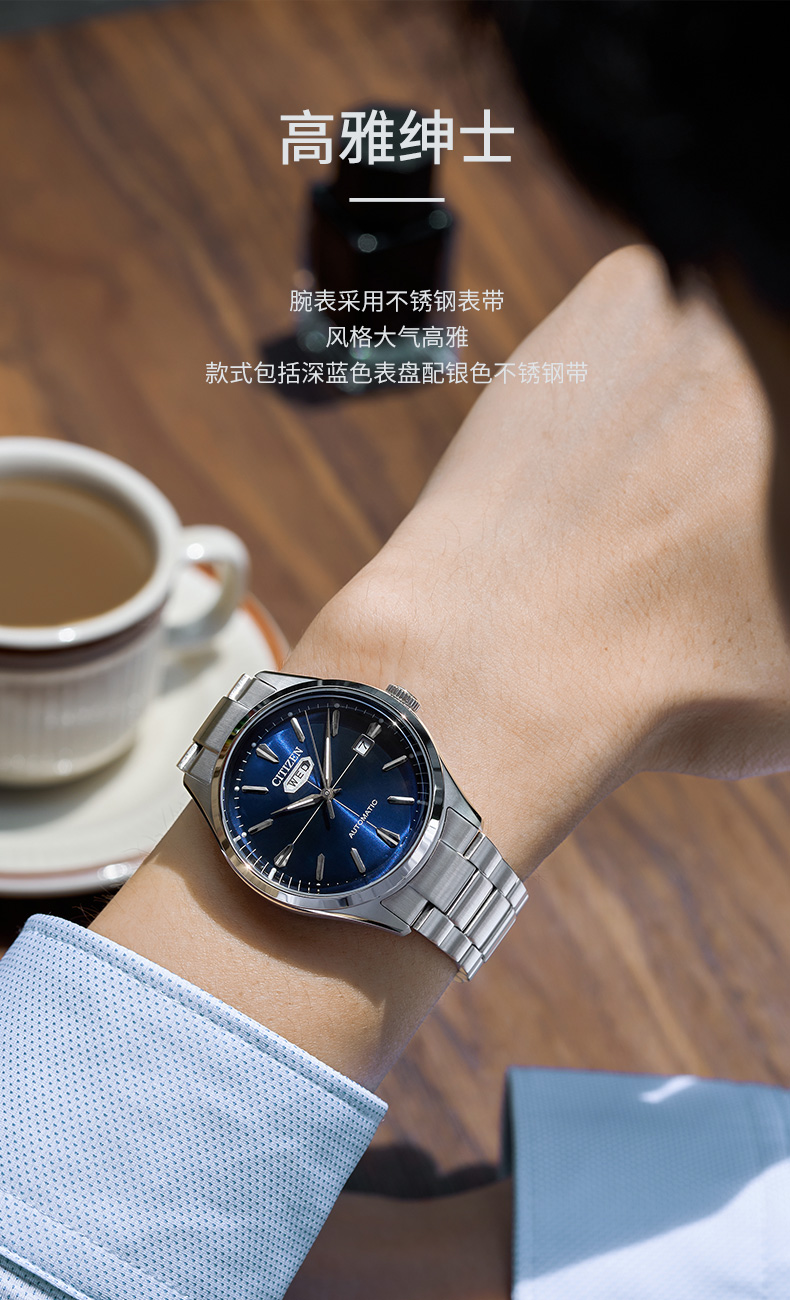 西铁城日本官方正品复古简约蓝盘钢带防水机械手表男 NH8391-51E