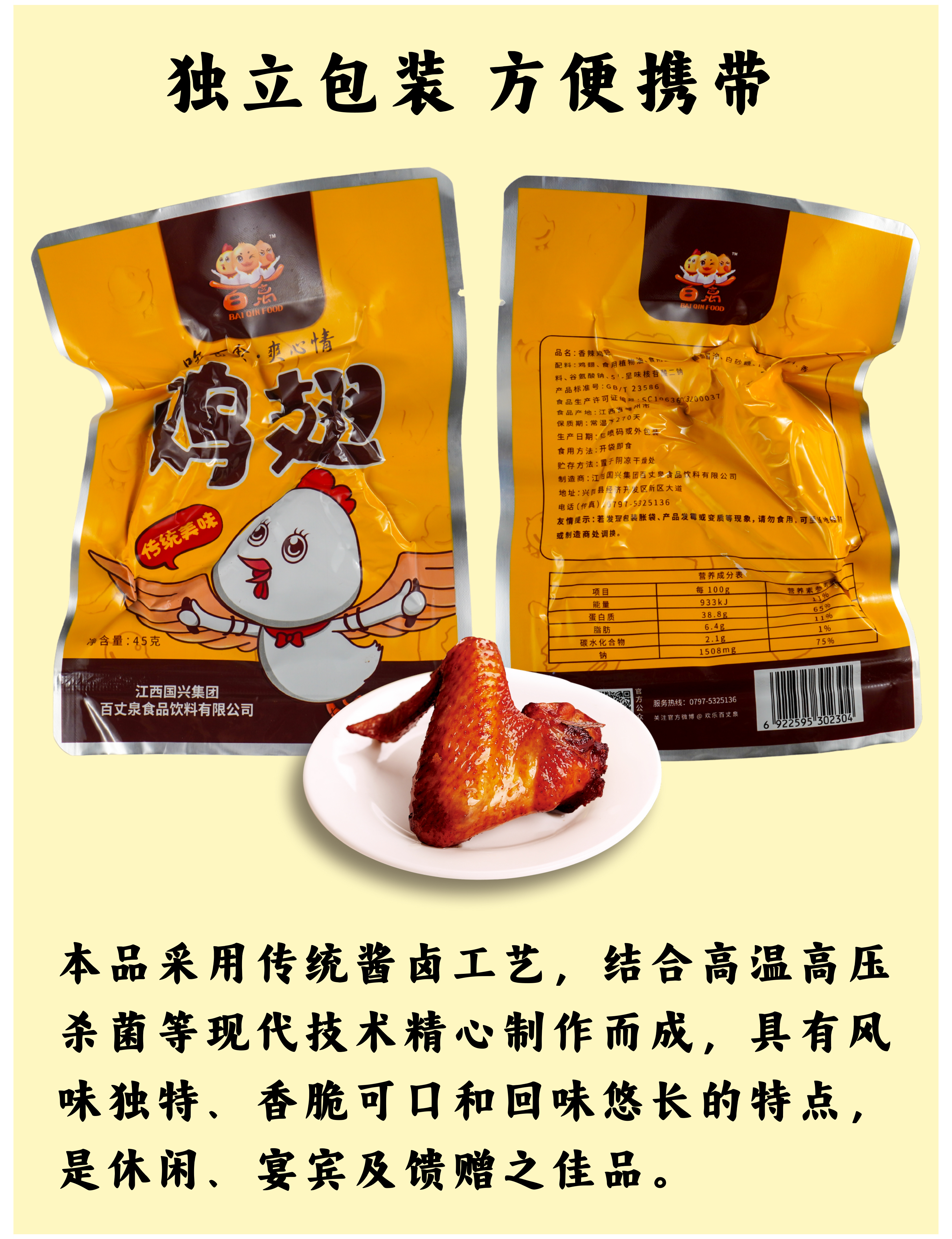 百丈泉45g香辣鸡翅即食鸡翅*8个