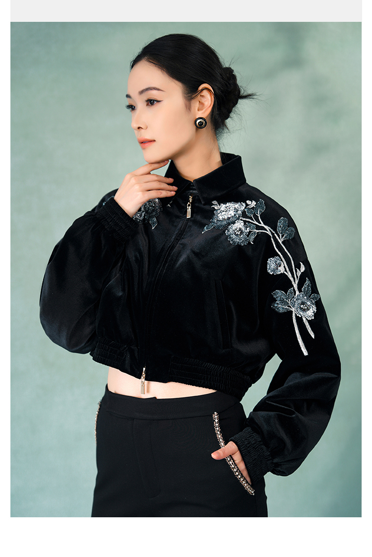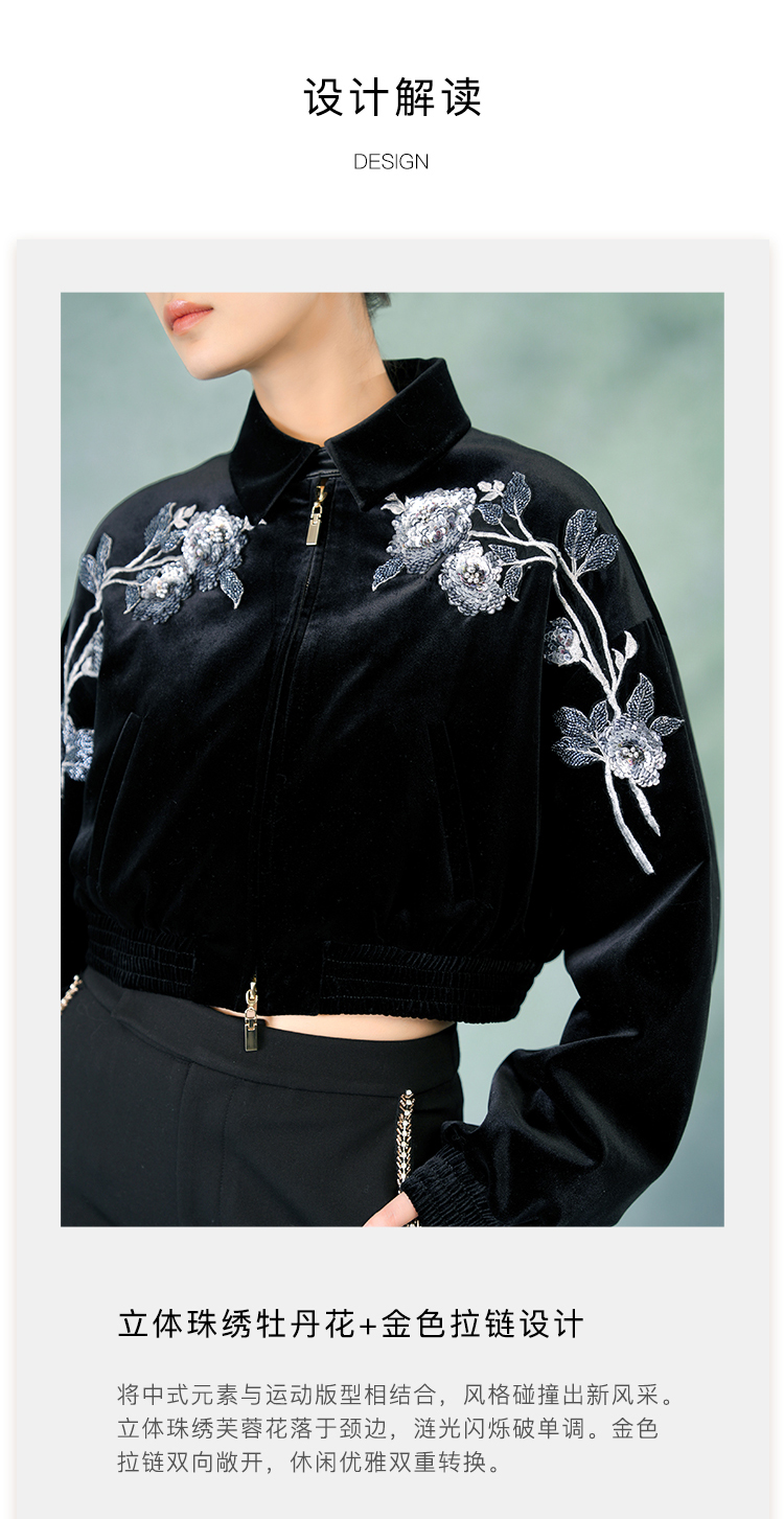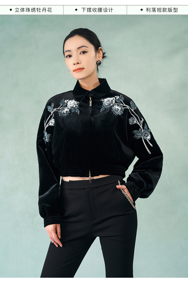 郭培成衣品牌精品系列立体珠绣牡丹花丝绒外套