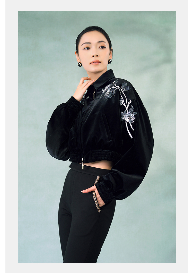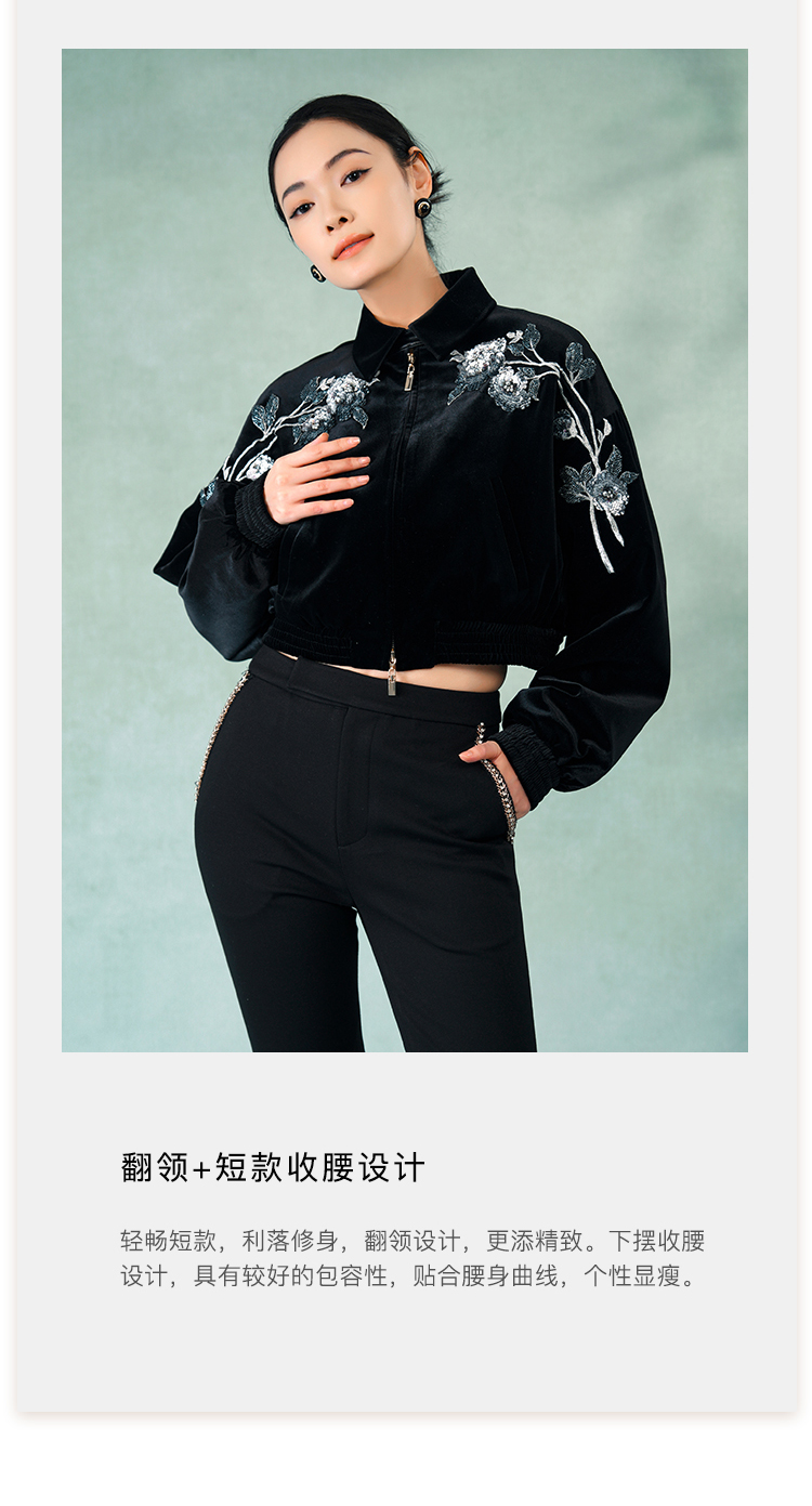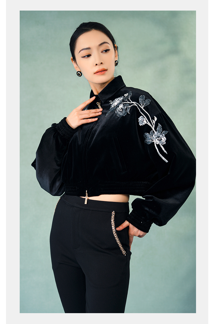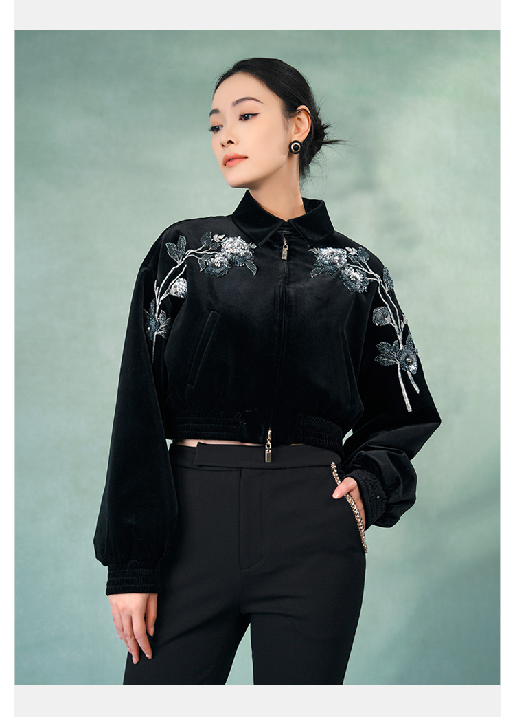 郭培成衣品牌精品系列立体珠绣牡丹花丝绒外套