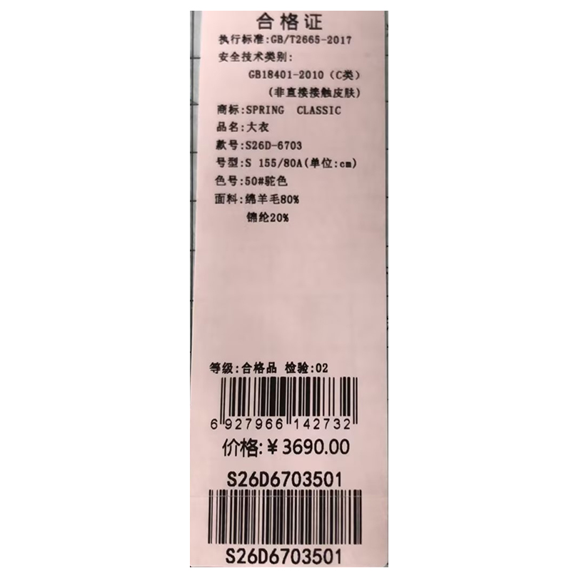 西贝伦大衣S26D6703