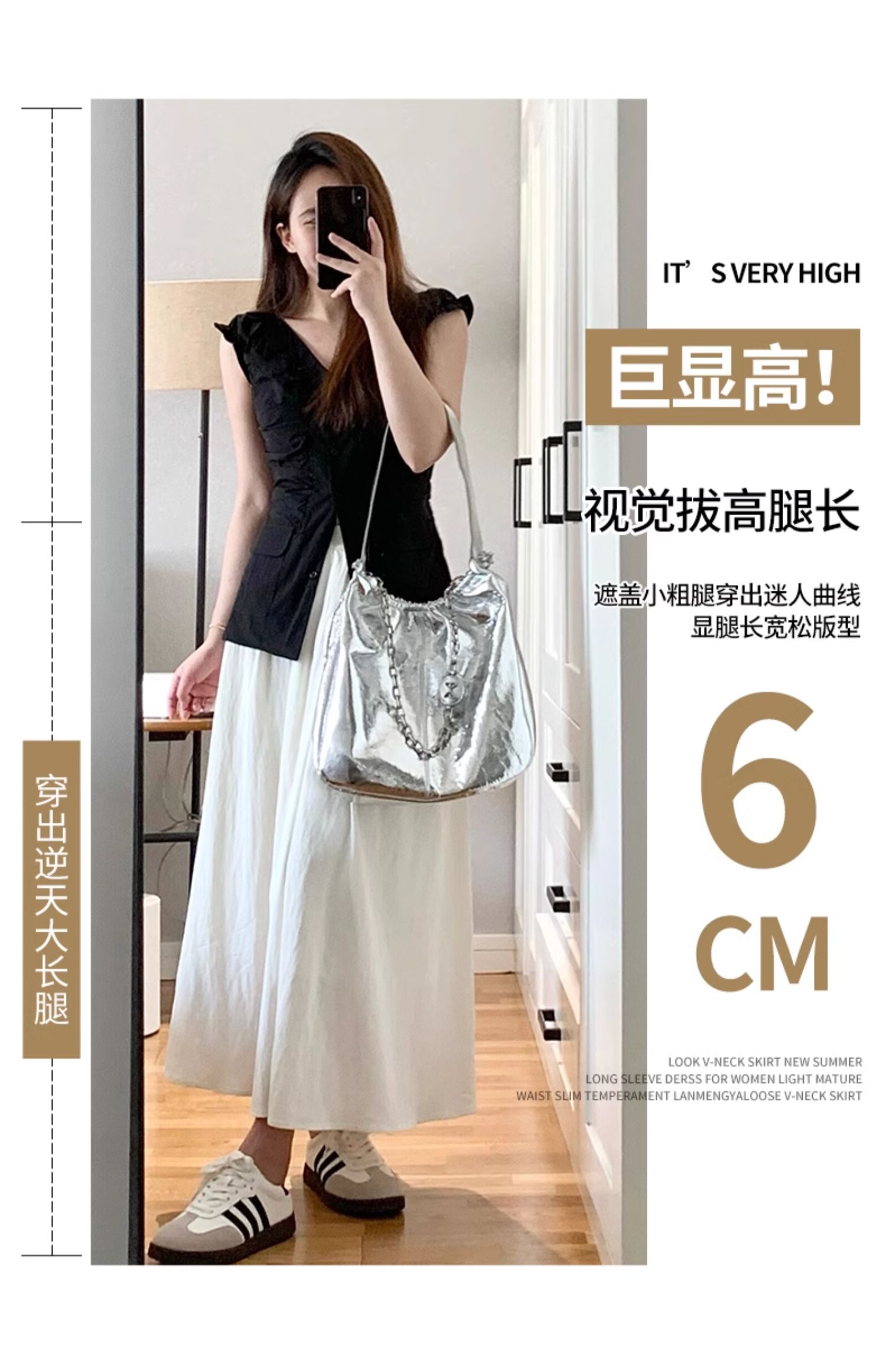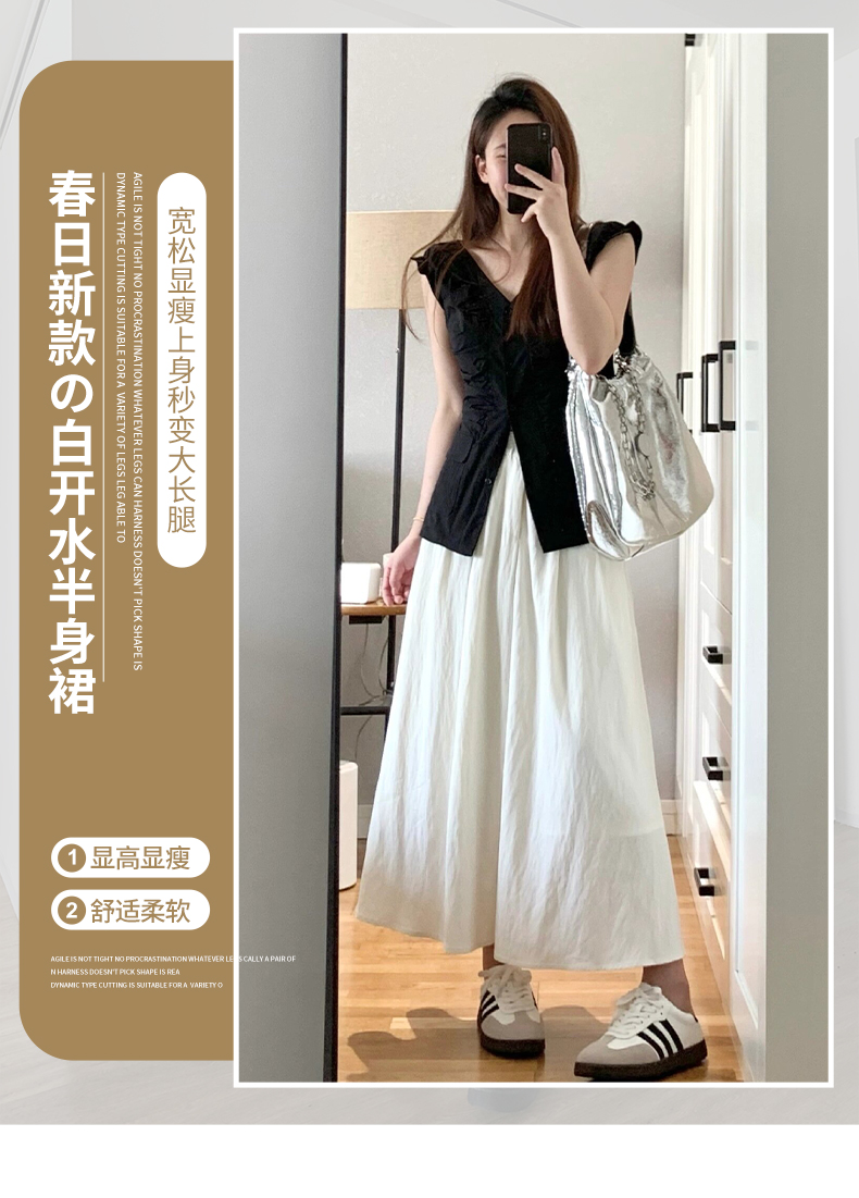 消化各种腿型!【特妮娜 白开水半身裙】显高显瘦 舒适柔软 高腰宽松版型 A字裙摆 臀上贴合 亲肤透气 耐穿耐磨 防走光内衬