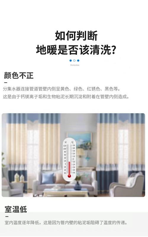 3.暖气清洗分为地暖清洗和暖气片清洗,清洗价格分别为地暖一路(1冷1热为一路)、暖气片一组,不分大小。