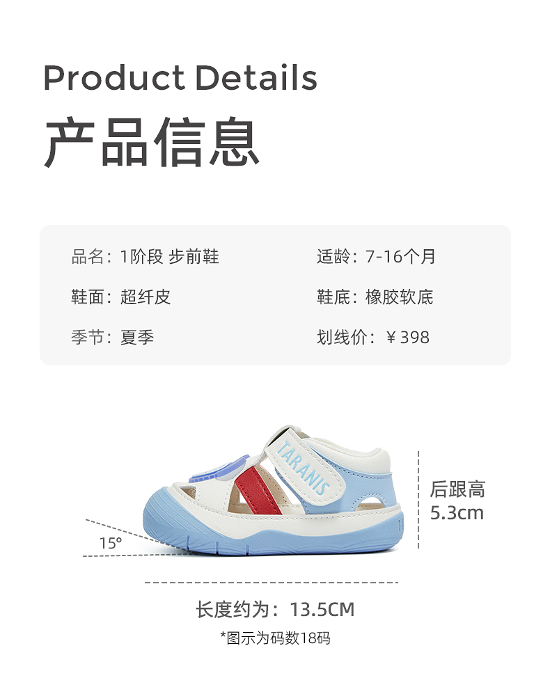 泰兰尼斯101夏季婴儿鞋透气轻便男童宝宝鞋凉鞋女童鞋新生步前鞋 T24B5B5669