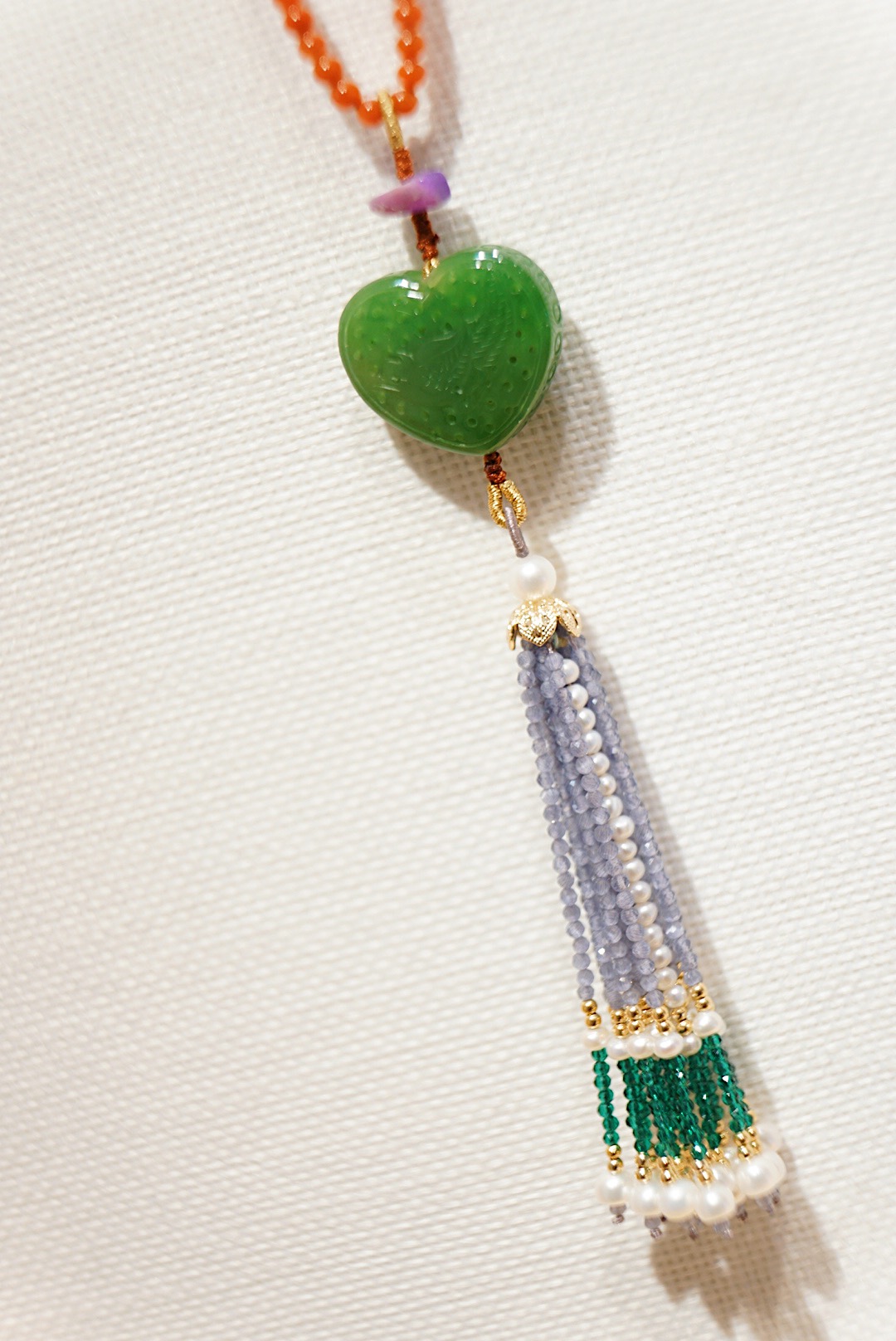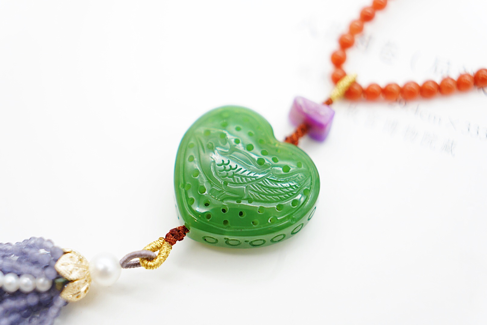 碧玉爱心香囊,很少见的题材哦!颜色鲜艳的绿色,生命力旺盛的感觉哦~没黑点,清新特别!
