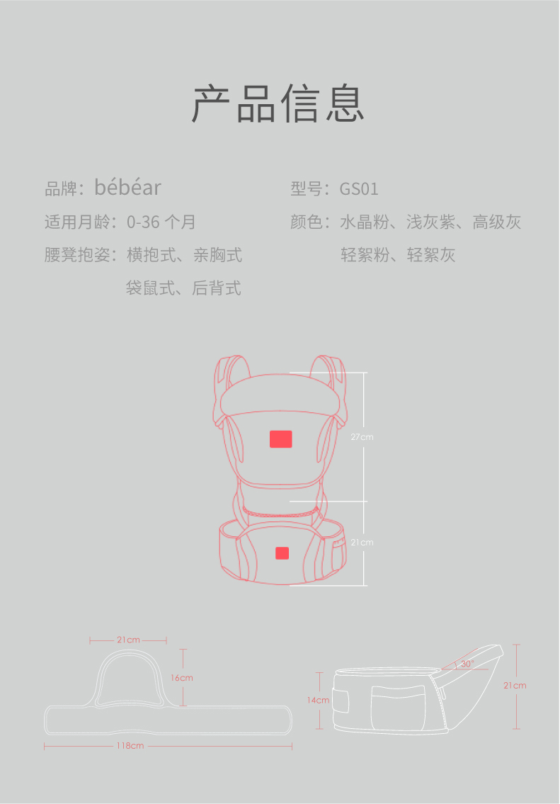 抱抱熊bebear多功能新生儿横抱腰凳背带GS01