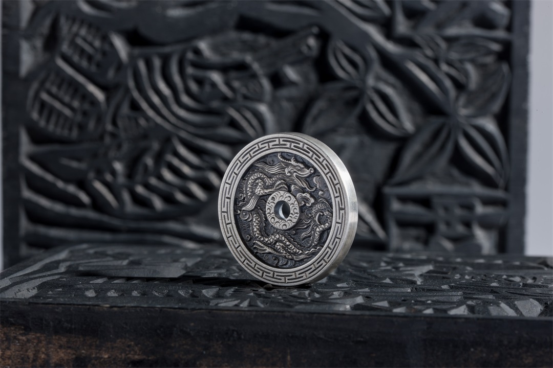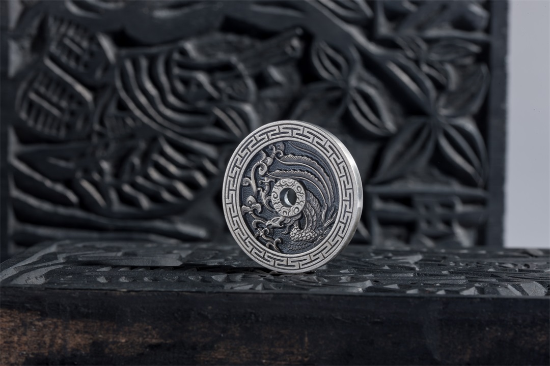矩德泉坊 纯银手作 龙凤银币(3.3厘米錾刻版) gq230700729