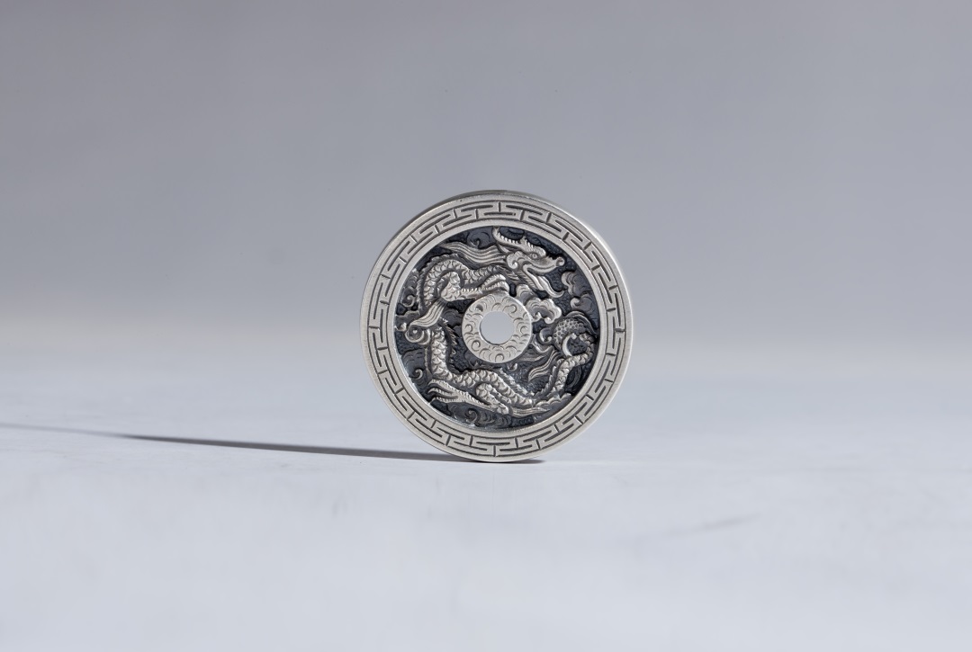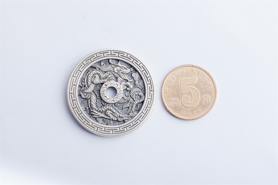矩德泉坊 纯银手作 龙凤银币(3.3厘米錾刻版)gq230700729
