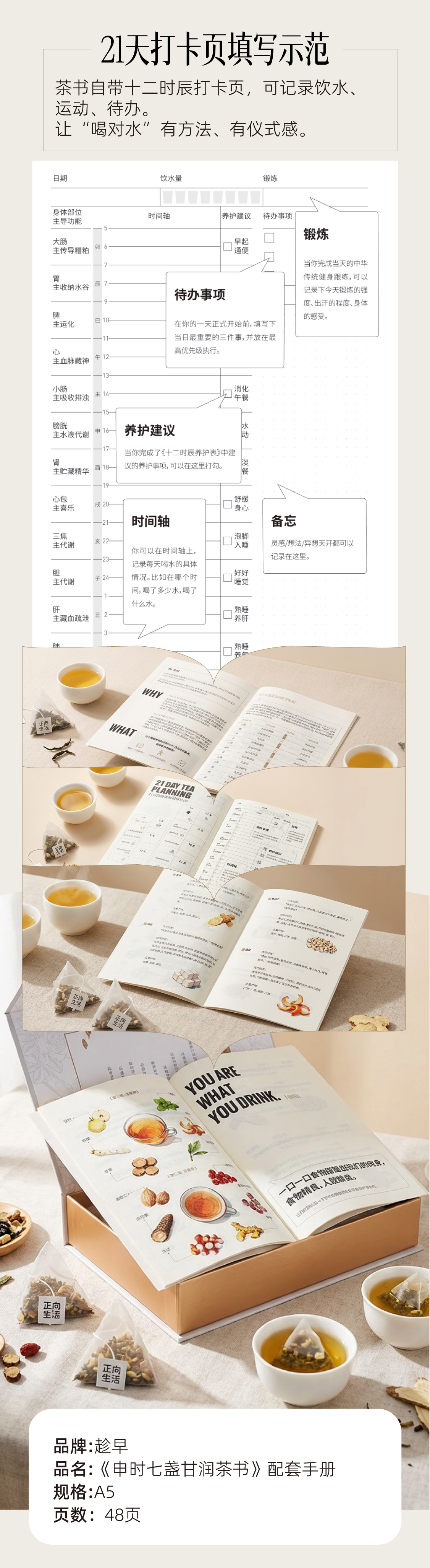 《中式养练21天》日课含《申时七盏甘润茶书》茶书礼盒、21天茶书打卡手册