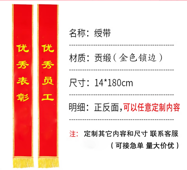 【员工绶带】优秀表彰披肩带绥带定做