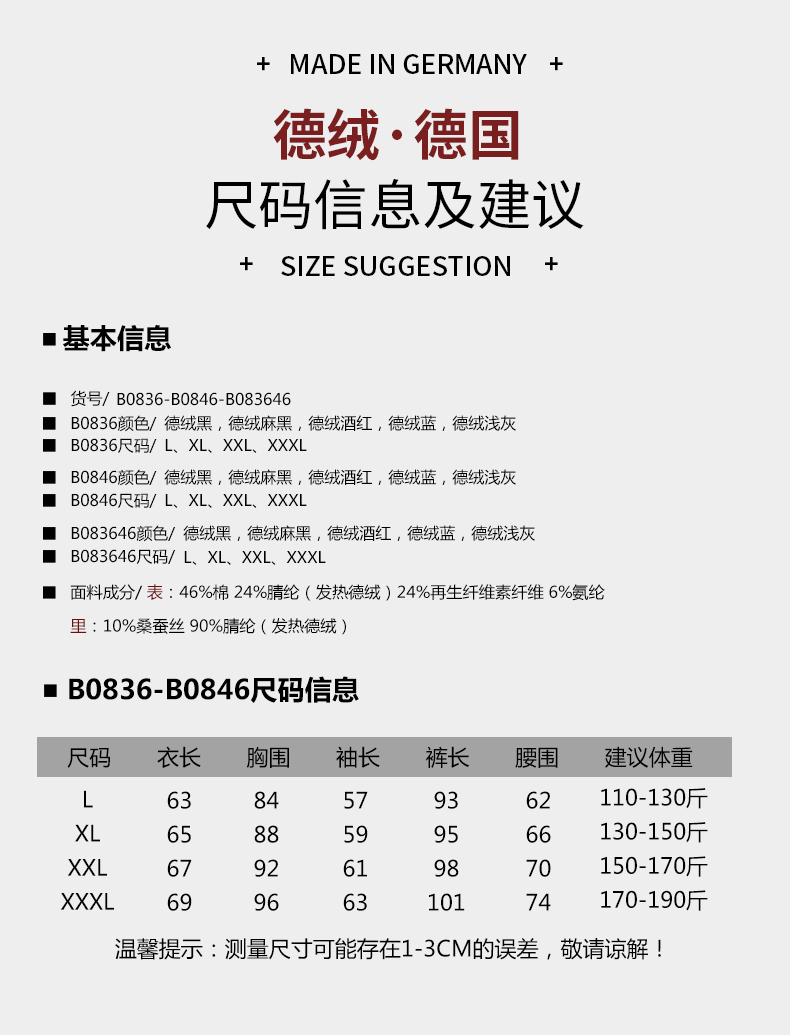 男款内衣尺码选择见页面底部哦!