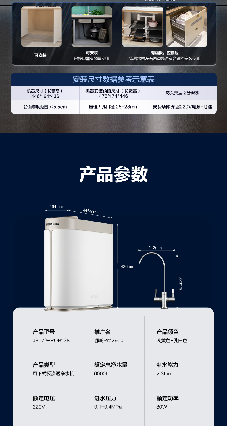 安吉尔哪吒Pro2900 净水器家用直饮机RO反渗透
