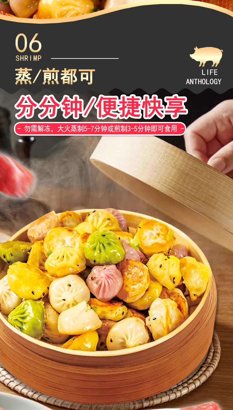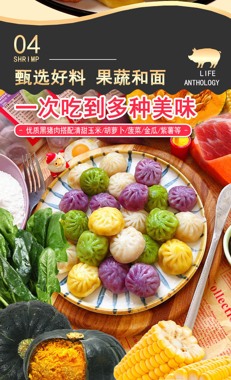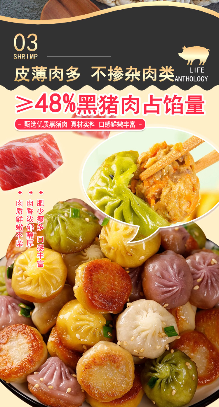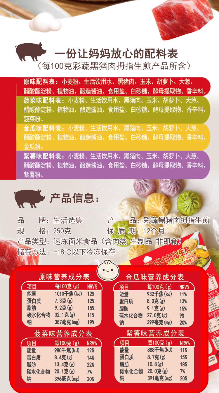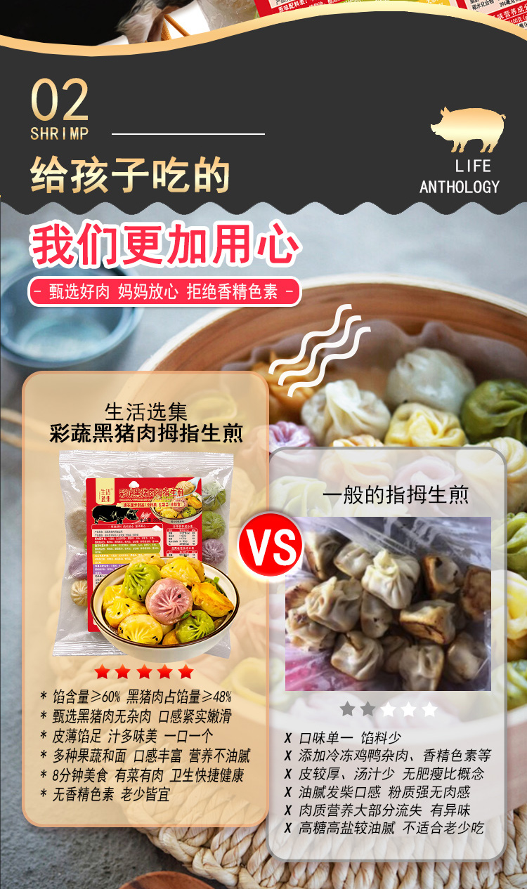 【生活选集】彩蔬黑猪肉拇指生煎250克*5袋