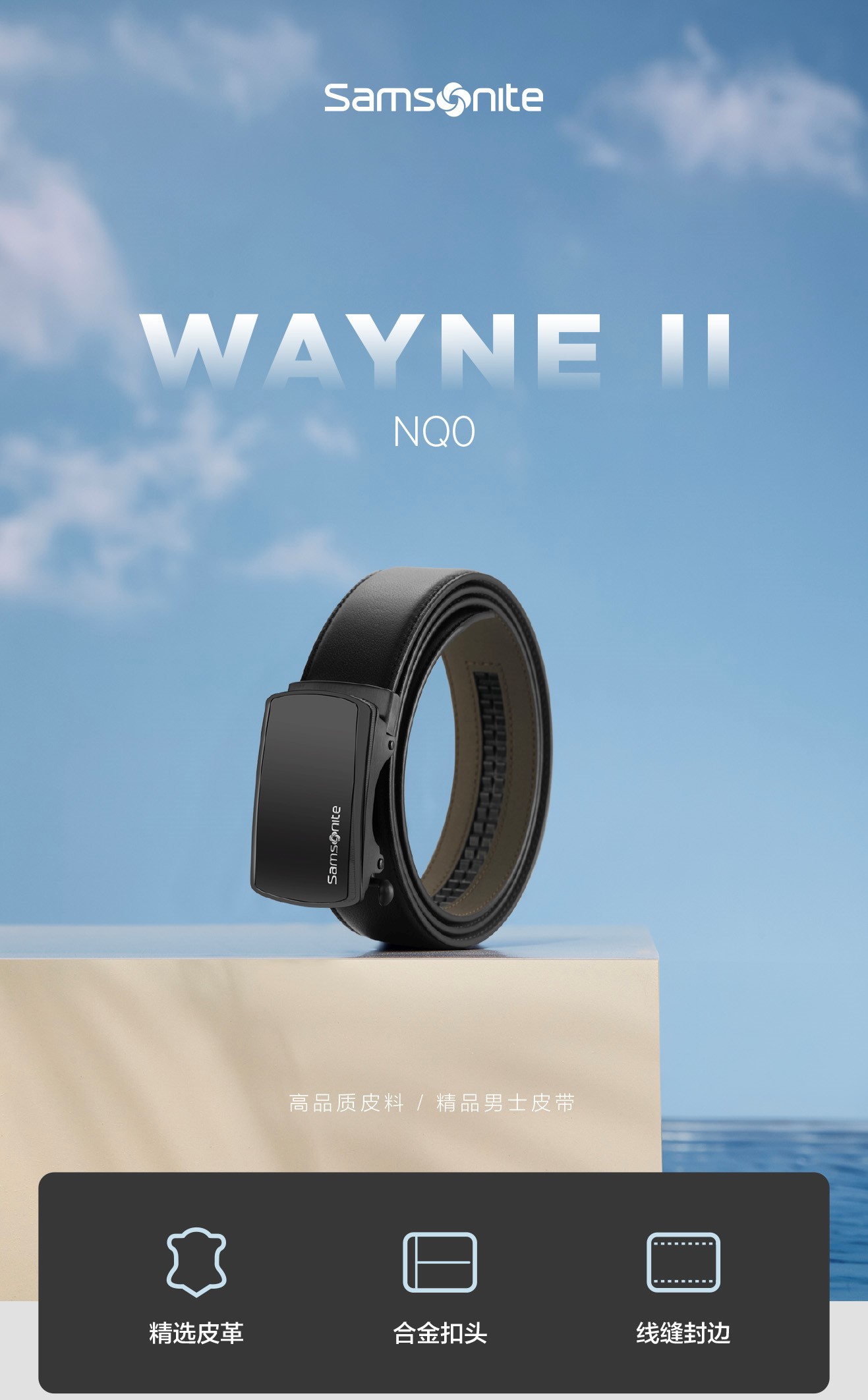 新秀丽男士经典简约牛皮商务休闲时尚自动扣皮带NQ0*004
