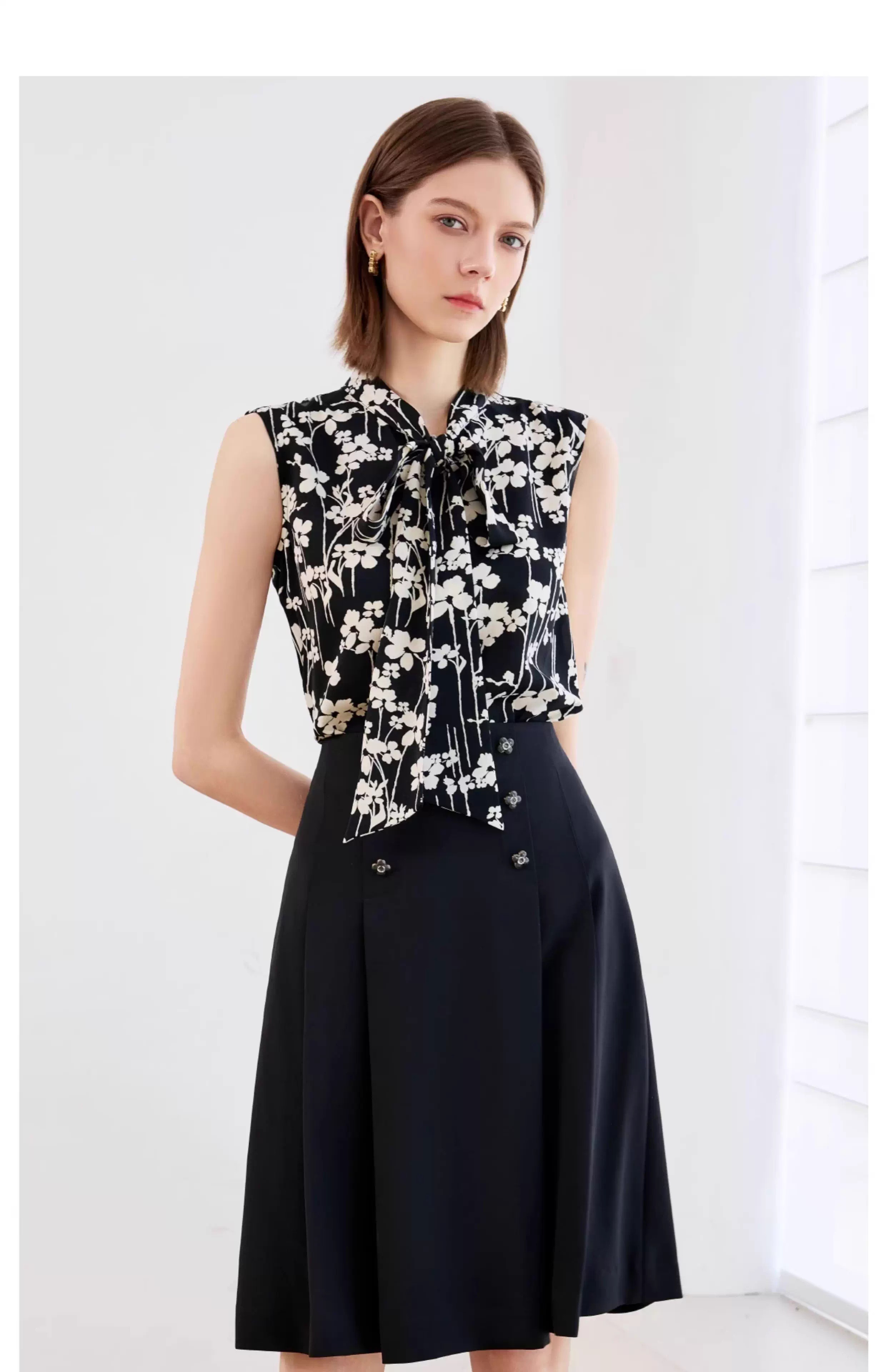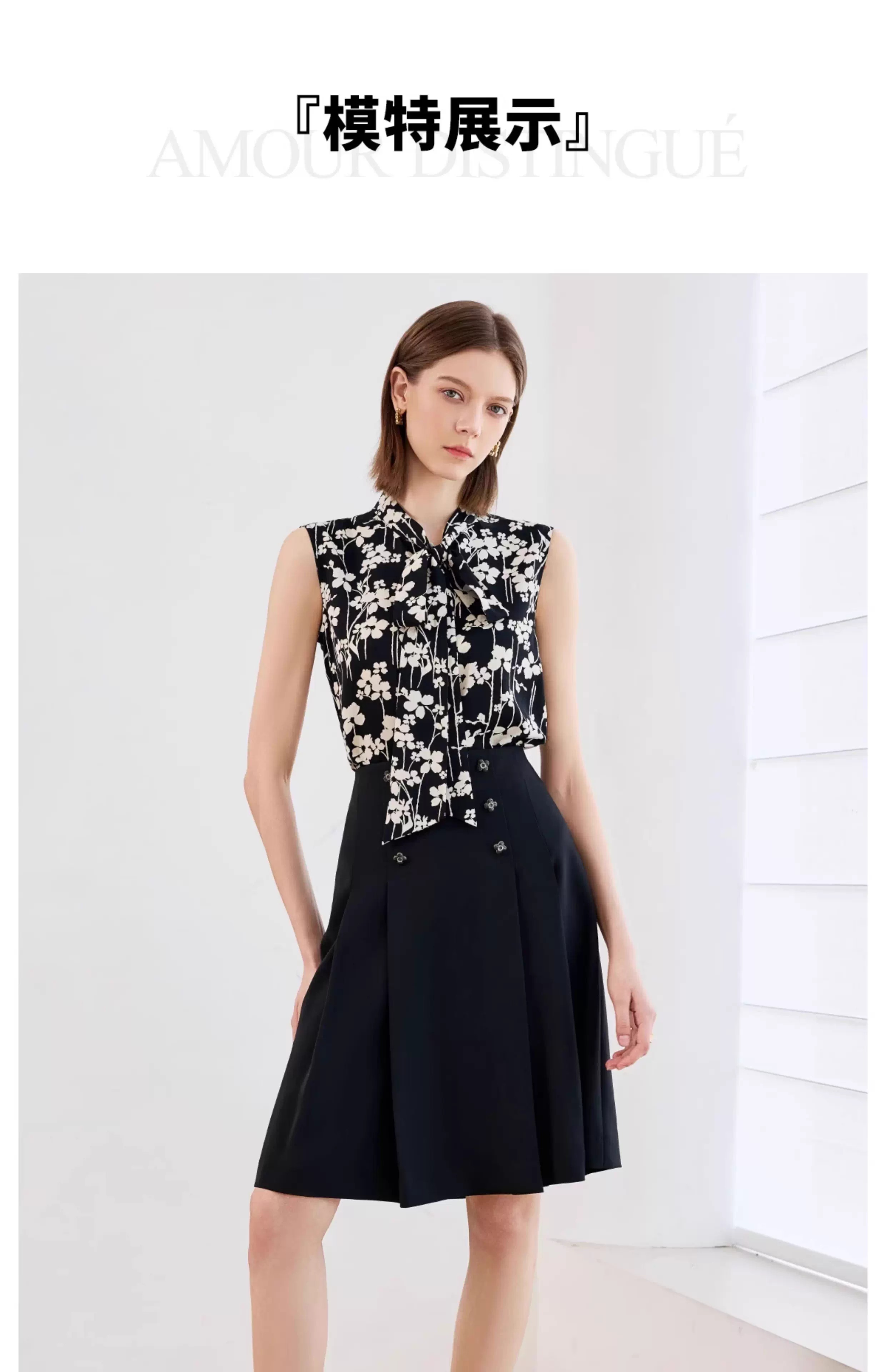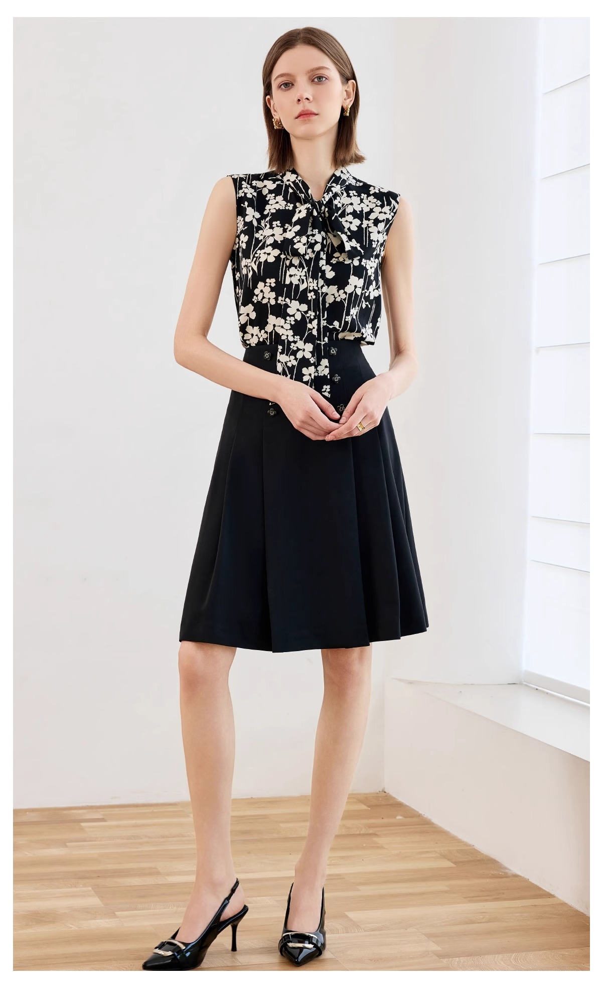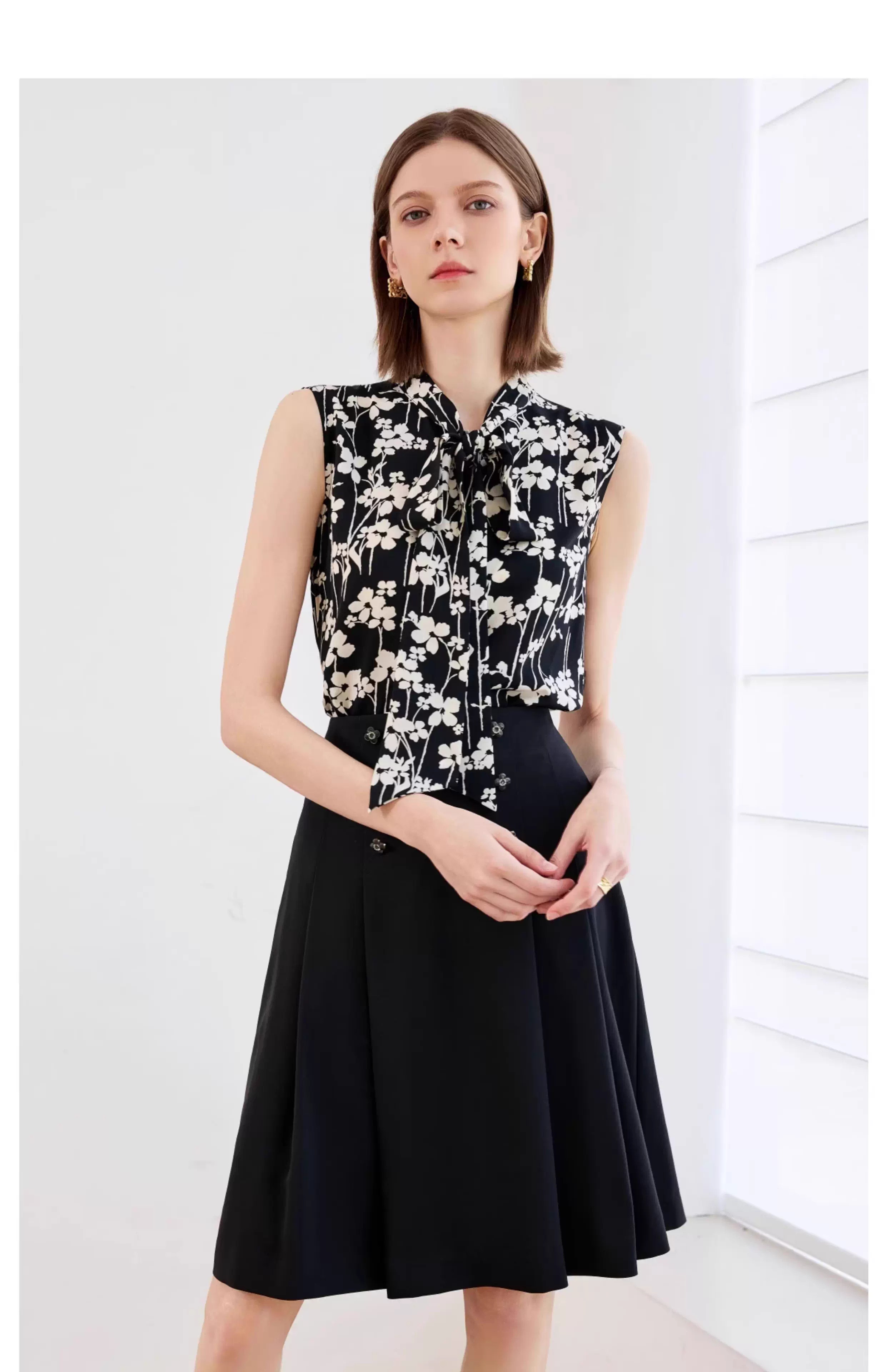 IWY/时尚高级感衬衫套装女夏季新款黑白碎花衬衣半裙两件套OL职业装B552+S2297