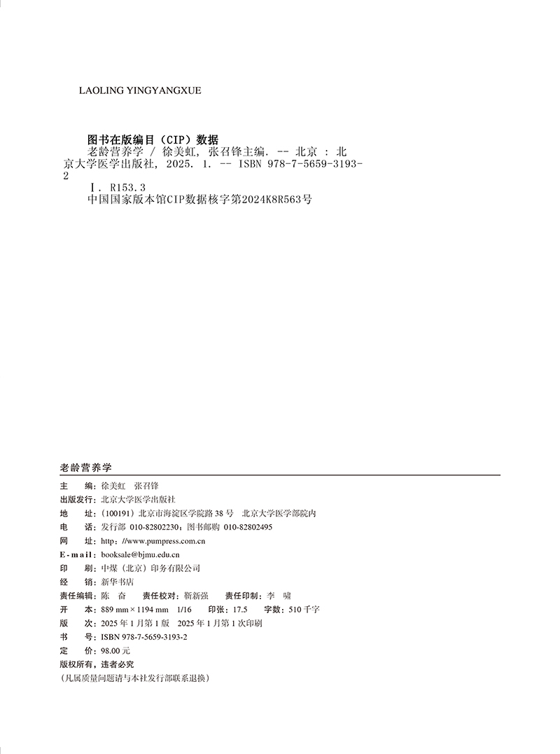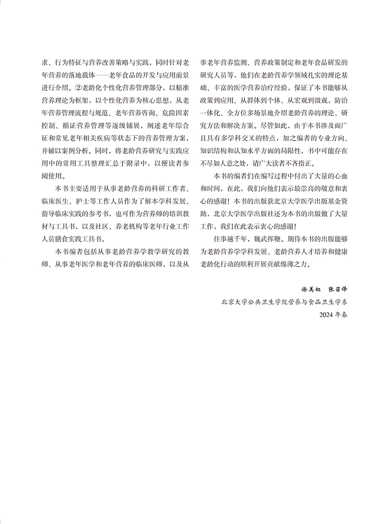 老龄营养学 主编 徐美虹 张召锋 涵盖老年营养学基础老年临床营养和老年营养食品 9787565931932 北京大学医学出版社