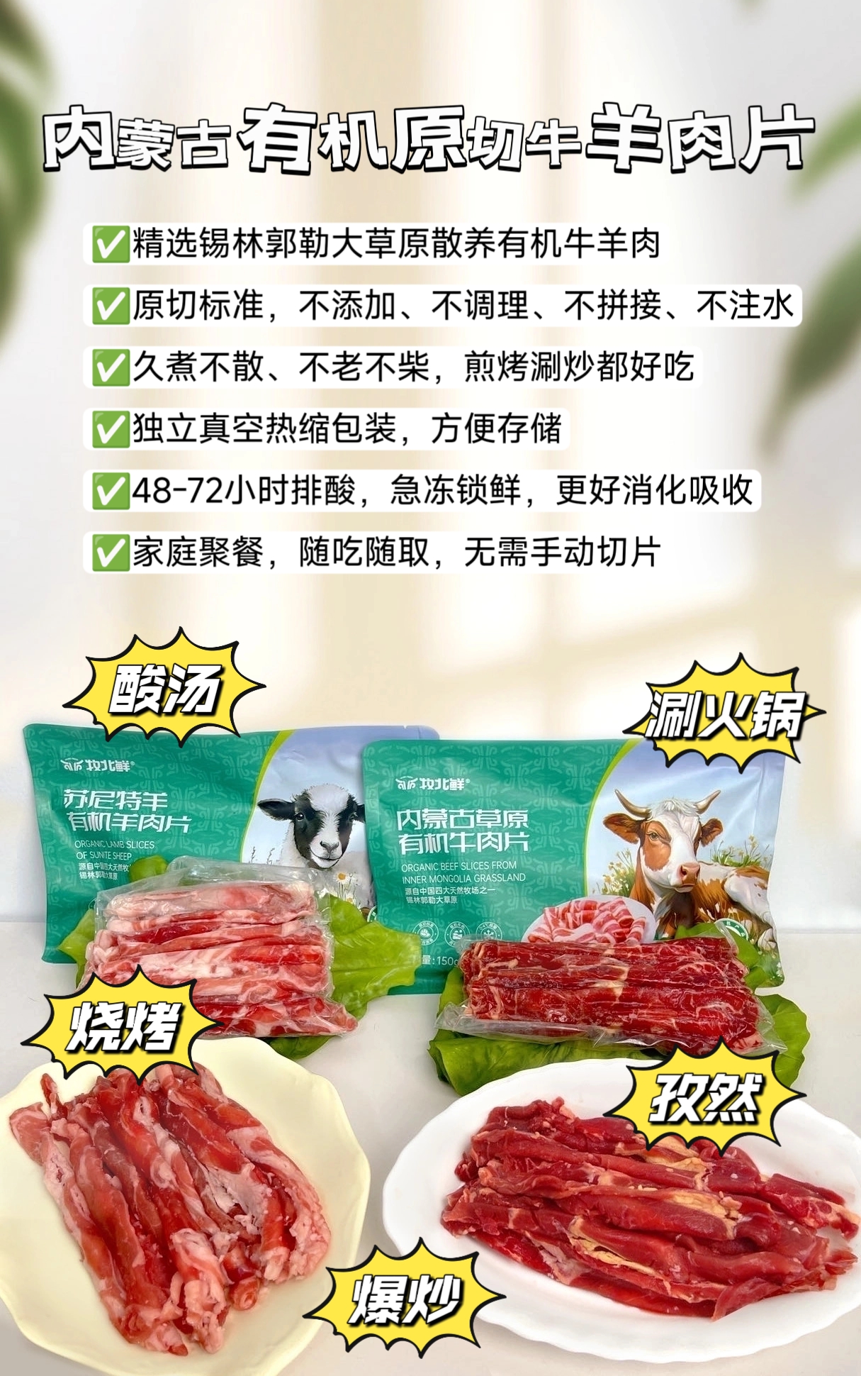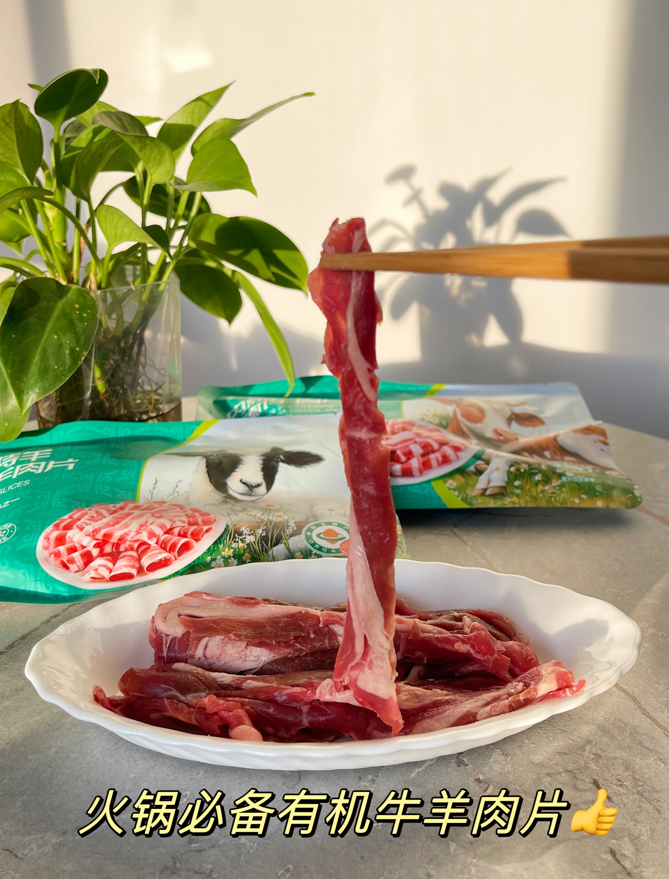 而咱们的有机原切羊肉片,只用真羊肉,拒绝调理拼接注水,能看见肉的纹理,不易散,不缩水,肉品没得说✅