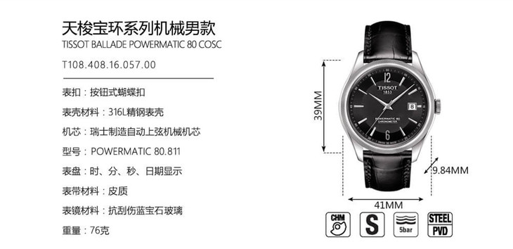 | 品牌 | 天梭 TISSOT | 型号 | T108.408.16.057.00 |