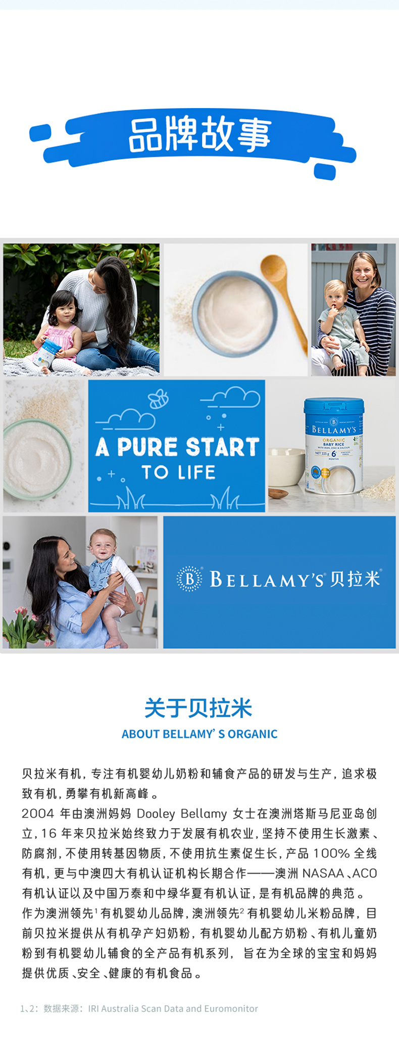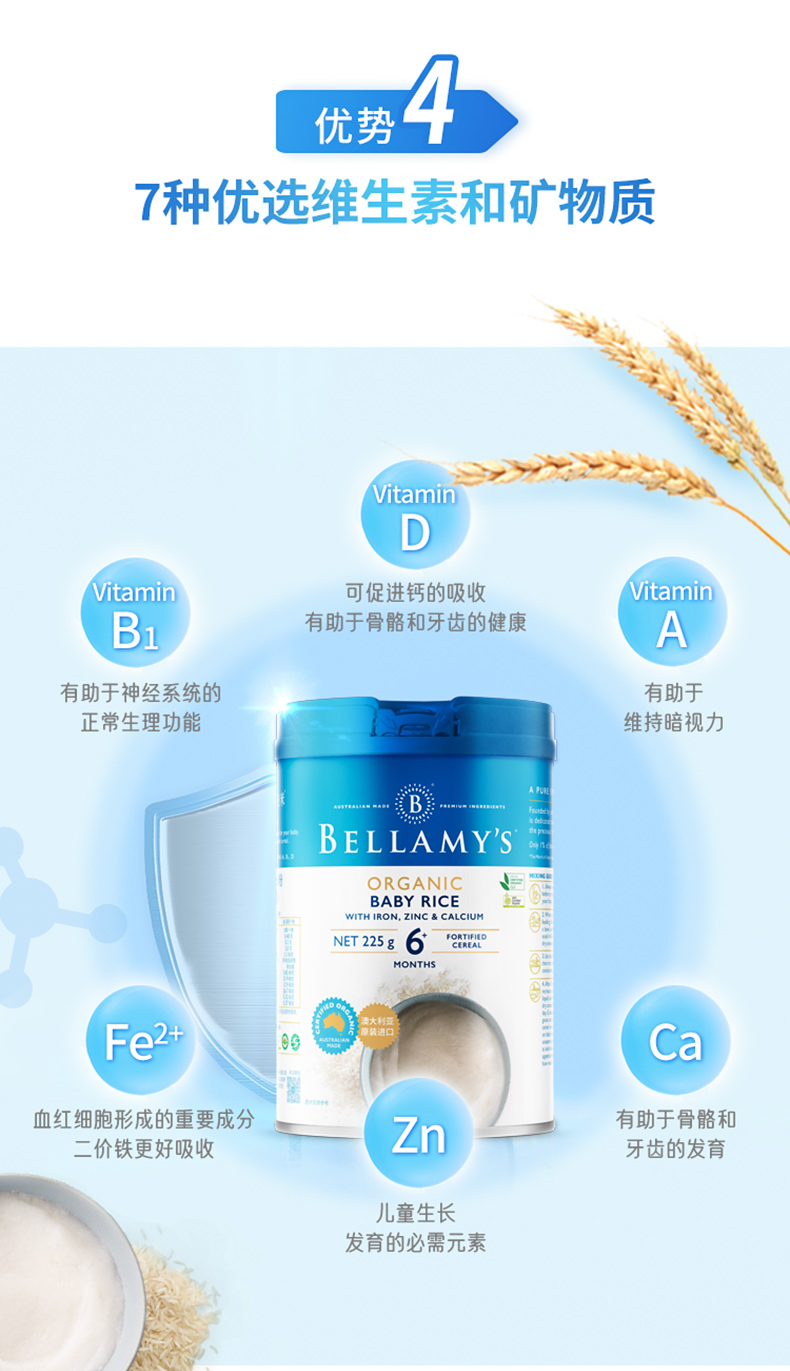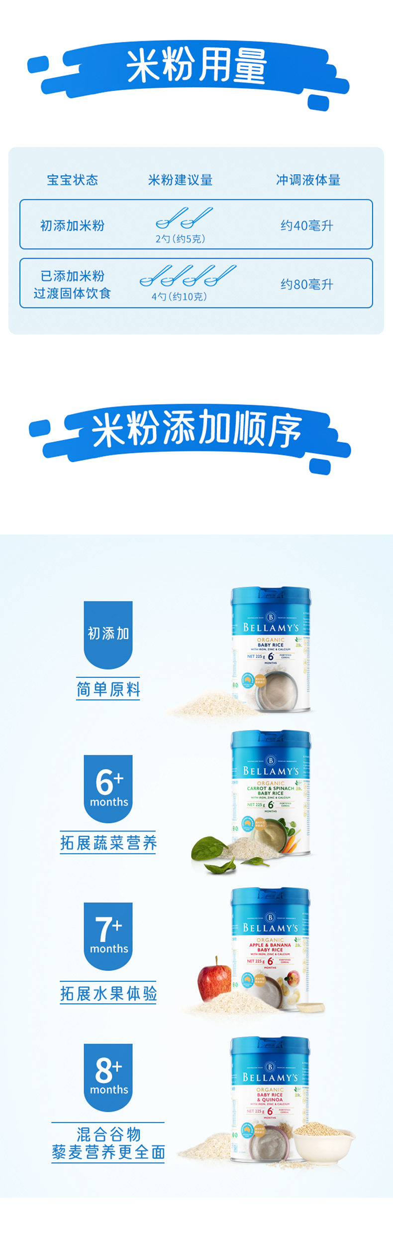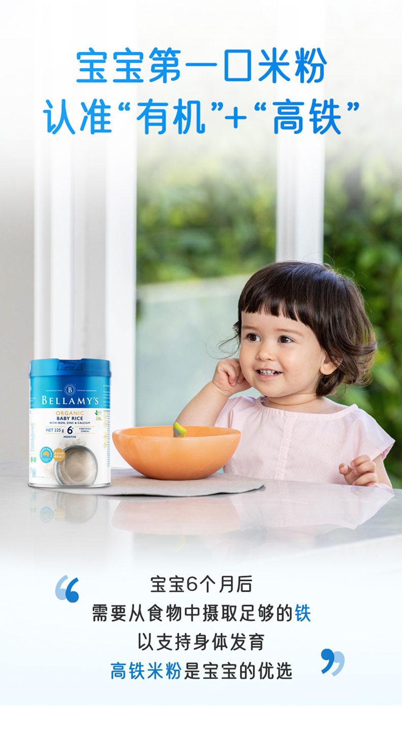Bellamy's贝拉米宝宝辅食 高铁营养米糊 6月+ 有机婴幼儿大米粉225g