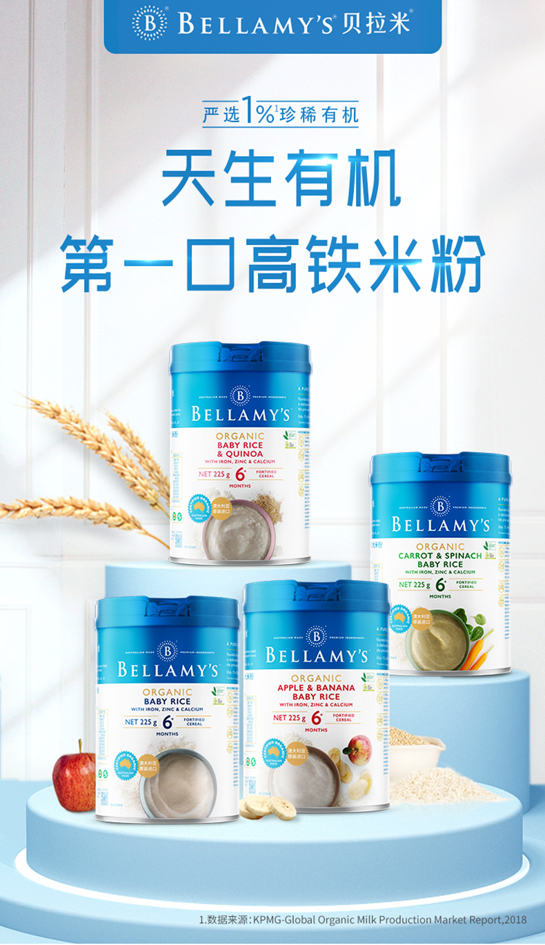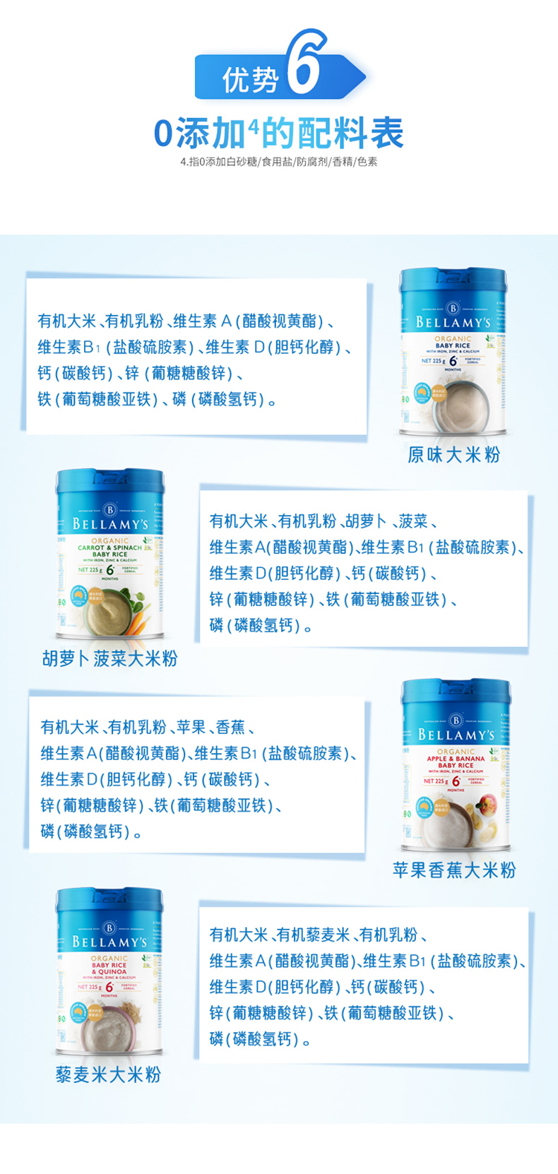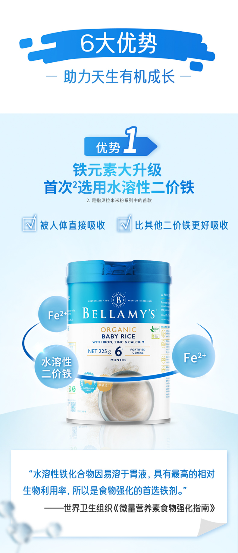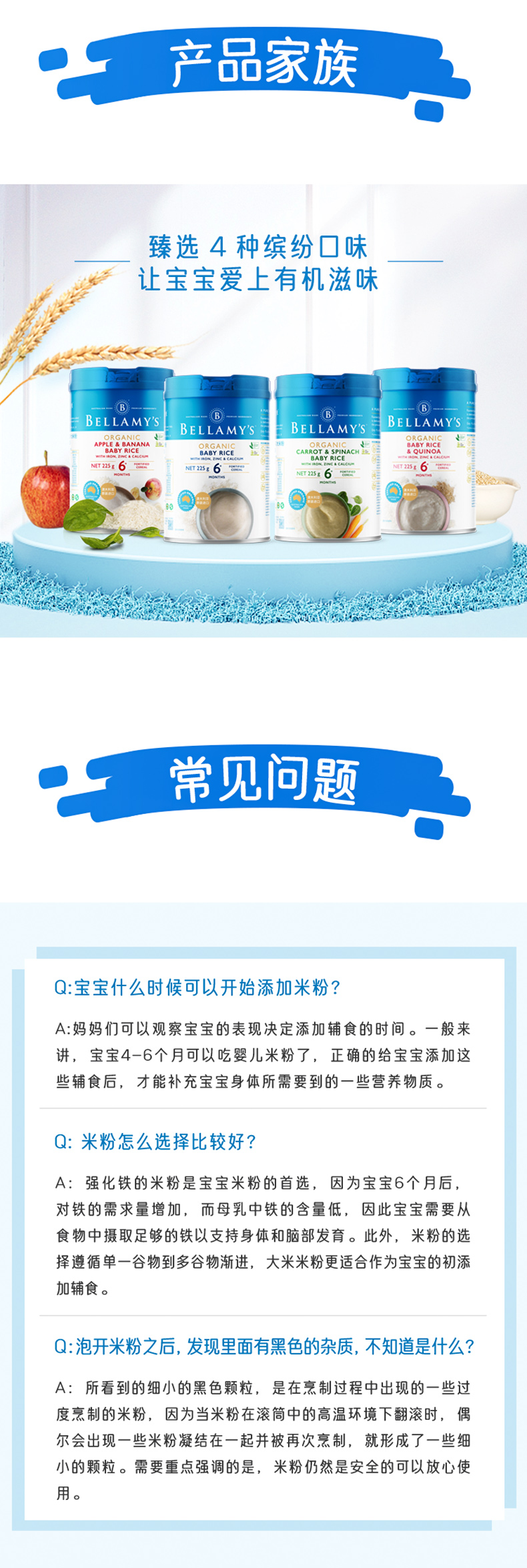 Bellamy's贝拉米宝宝辅食 高铁营养米糊 6月+ 有机婴幼儿大米粉225g