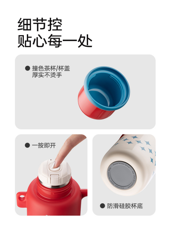 ✅大容量满足全天饮水需求,减少频繁续水麻烦满足一天饮水量 ✅奶奶fufu治愈系温柔撞色~,兼具美观与治愈感~ ✅自带杯盖,是杯盖也是茶杯,防尘又卫生美观 ✅内胆316不锈钢材质非常安心喝水健康