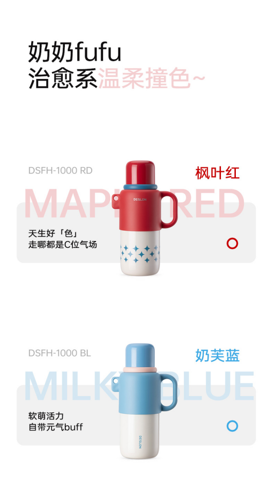 产品颜色:奶芙蓝(BL)、枫叶红(RD)