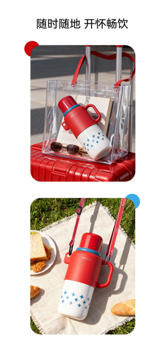 🔥好看!【德世朗DSFH-1000松风柚暖随行壶】💥色彩鲜艳,仿佛把童话世界浓缩其中🎁有了它,喝水、喝咖啡都变得更有仪式感。🐈防滑壶底,有效防止杯子在桌面上滑动或倾倒,用起来更加安心。